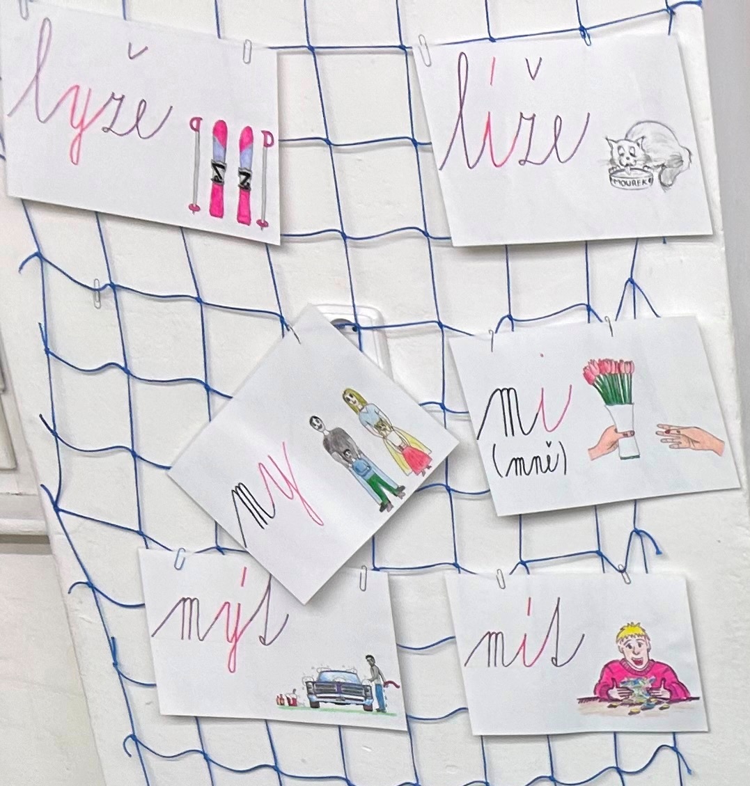 Malované obrázky pomáhají chápat význam jednotlivých slov a upevnit pravopis.