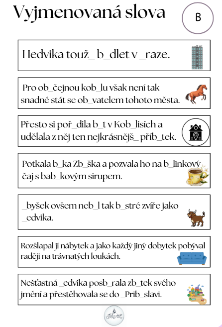 Materiál obsahuje originální text se zapojením vyjmenovaných slov po B.