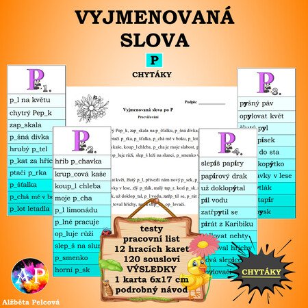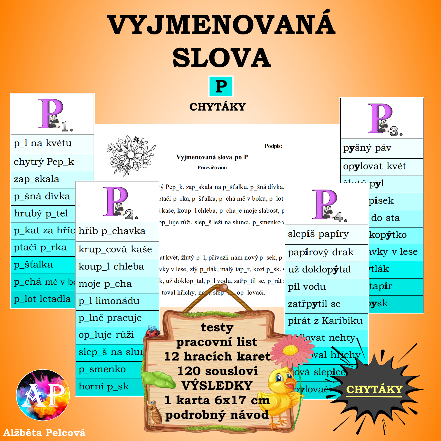 Sloupečky obsahují sousloví s vyjmenovanými slovy po P. Celý soubor je zaměřen na chytáky ve vyjmenovaných slovech typu PIL x PYL.