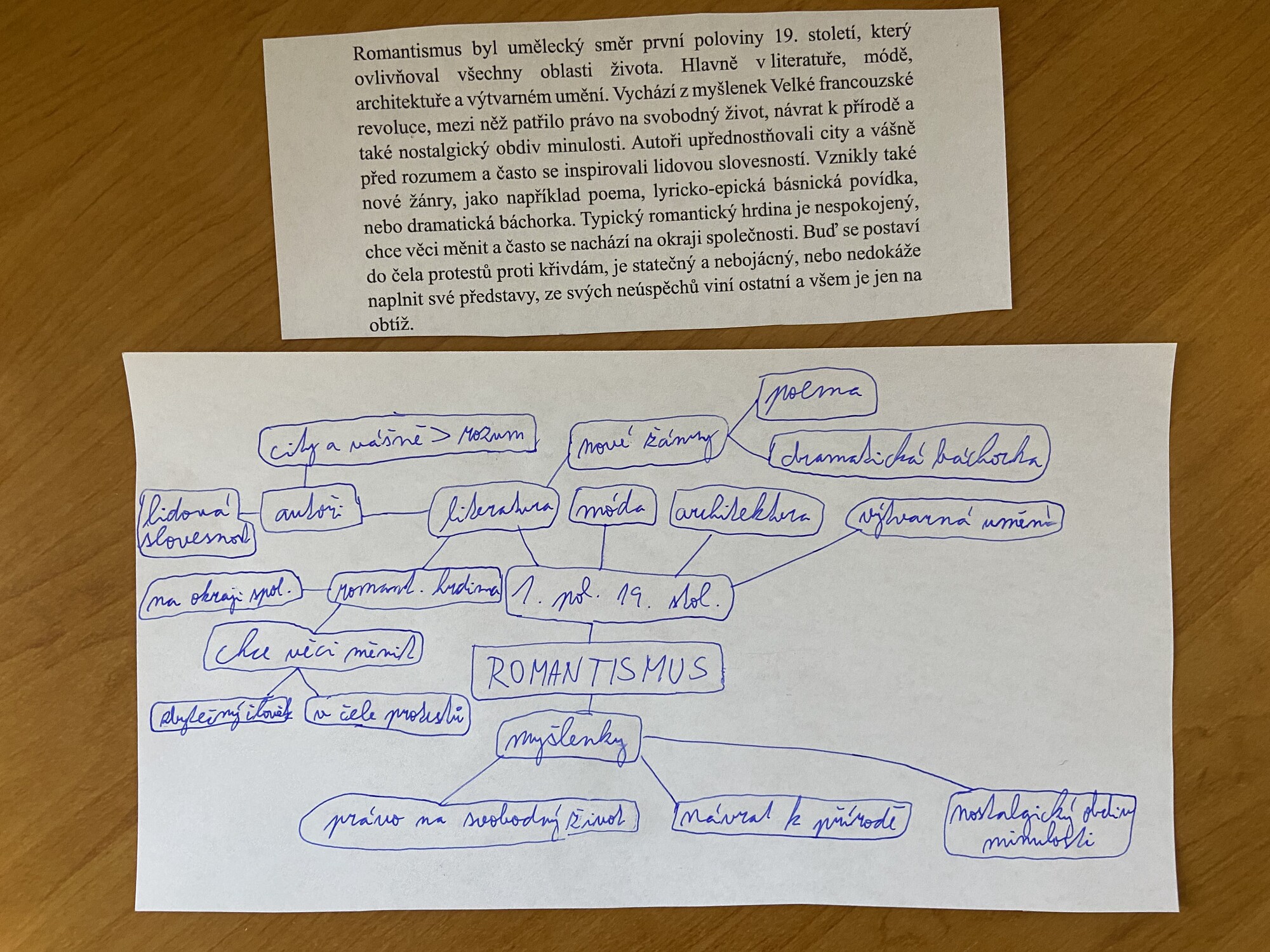 Po zahájení si žáci přečtou texty, a podle každého vypracují myšlenkovou mapu.