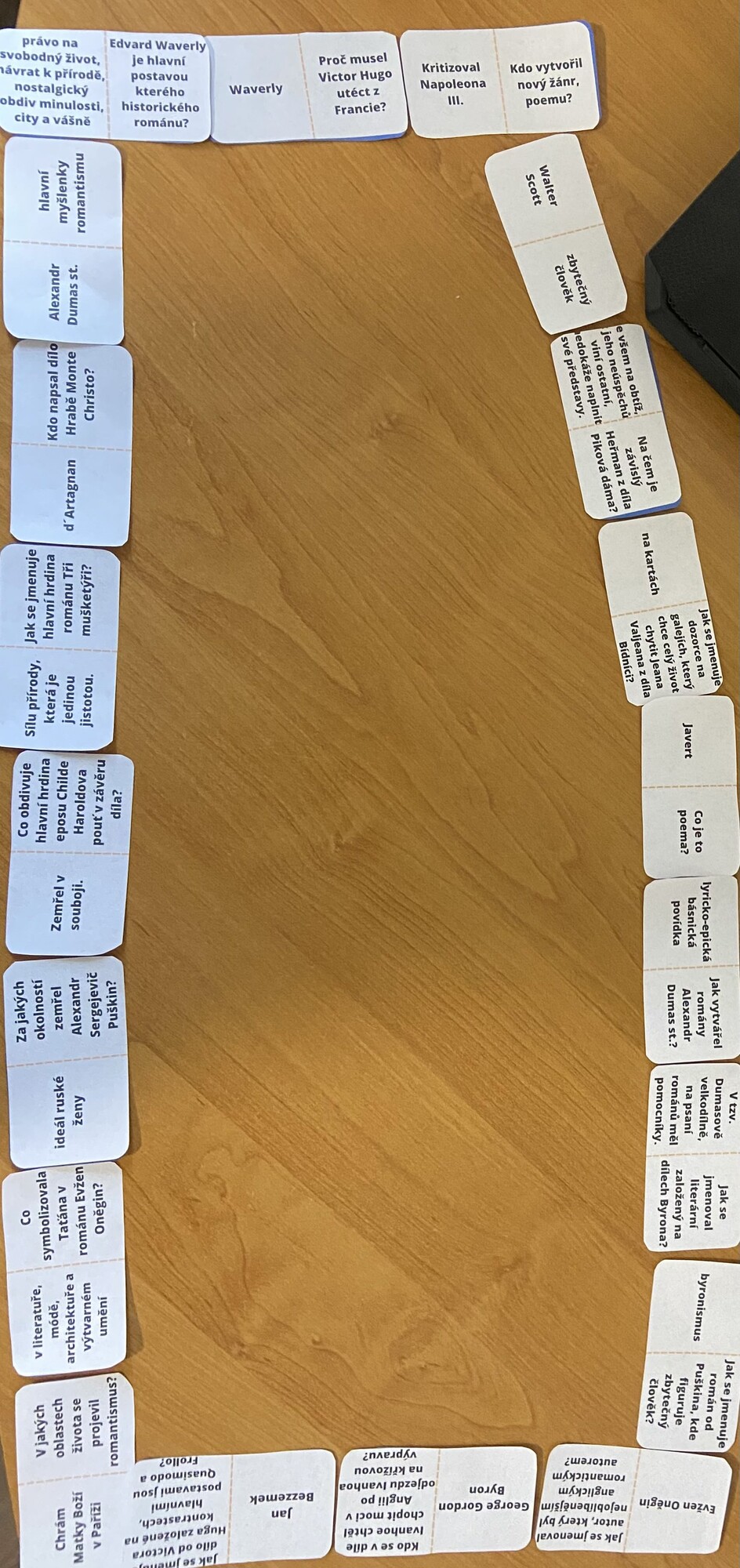 Můžete místo otázek každé skupině rozdat domino, na kterém jsou stejné otázky a odpovědi.