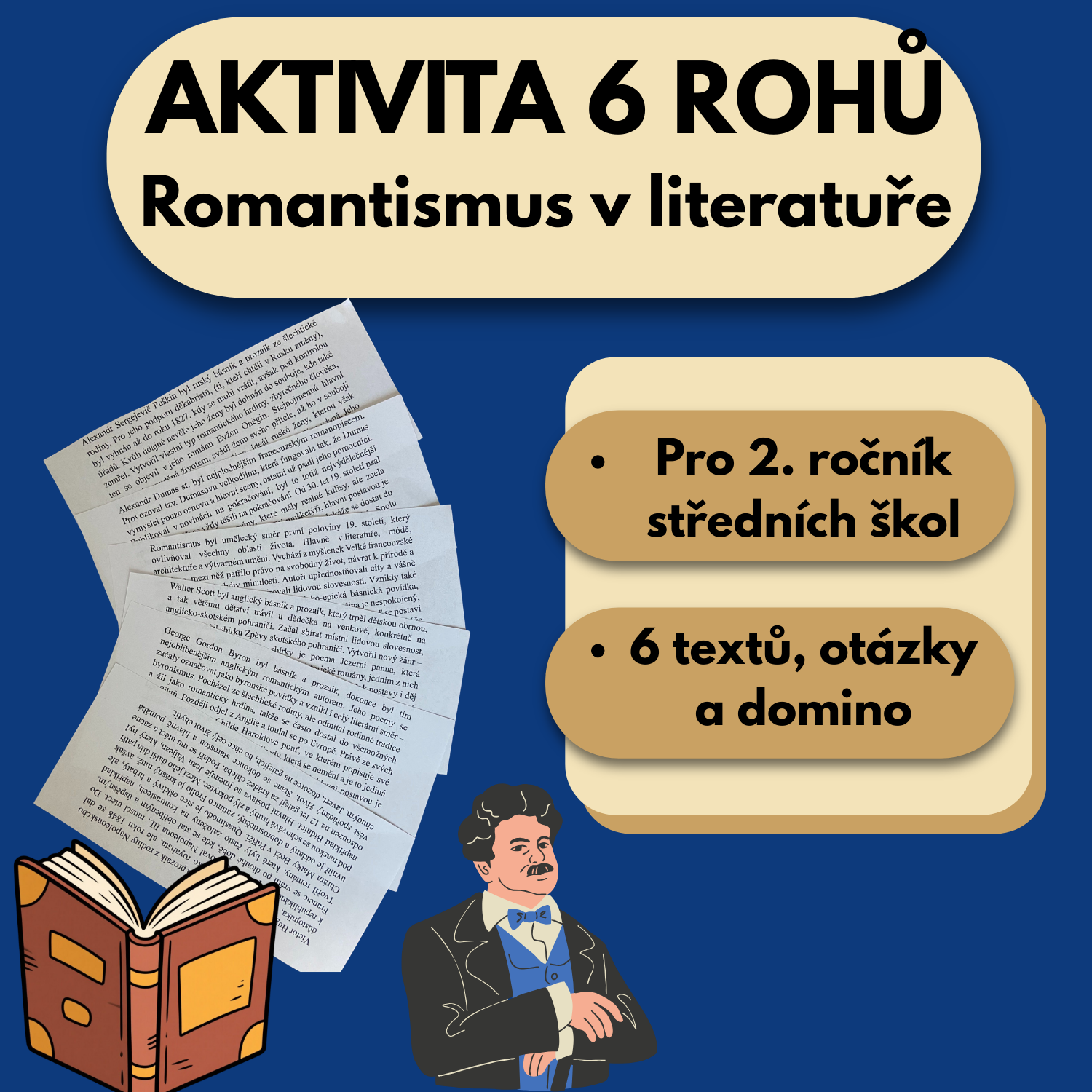 Šest textů, které jsou každý na půl stránky, položíte na šest stolů (šest stanovišť).