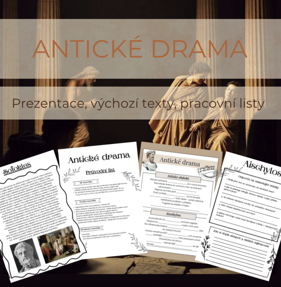 Pracovní list je navržen tak, aby studentům interaktivnější formou přiblížil antické drama, hlavní znaky, autory a jejich díla. Ve výchozích textech jsou shrnuty životy autorů, jejich vliv na rozvoj dramatu v antice, nejznámější díla a různé zajímavosti