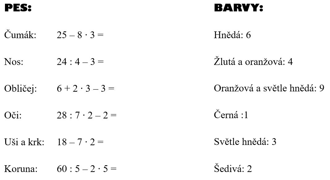 V dokumentu také máte předpřipravený dokument v powerpointu pojmenovaný příklady. Tento dokument obsahuje příklady, jejichž výsledky vám poté řeknou, jakými barvami a odstíny mají žáci vybarvit jednotlivé části zvířat. Jakou barvu mají oči, nos, tváře, obličej, uši a podobně. Funguje je to tak, že u každého příkladu je přiřazená část obrázku, a výsledek příkladu odkazuje na barvu, kterou budou danou část vybarvovat. Takže žáci vypočítají příklad u nosu, vyjde např. 7. Poté najdou vpravo číslo sedm a přiřazenou barvu nebo barvy. Tou následně vybarví nos zvířete. Jakmile je u čísla více barev, žáci používají a vybarvují oběma barvami po částech (jako mozaiku), barvy střídají.