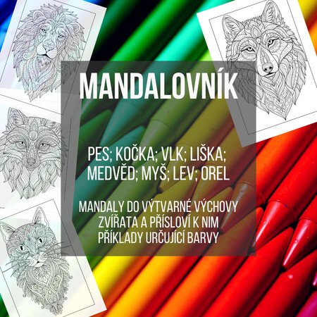 Materiál propojující výtvarnou výchovu, český jazyk a matematiku. Omalovánky v mandalovém stylu se zvířaty.