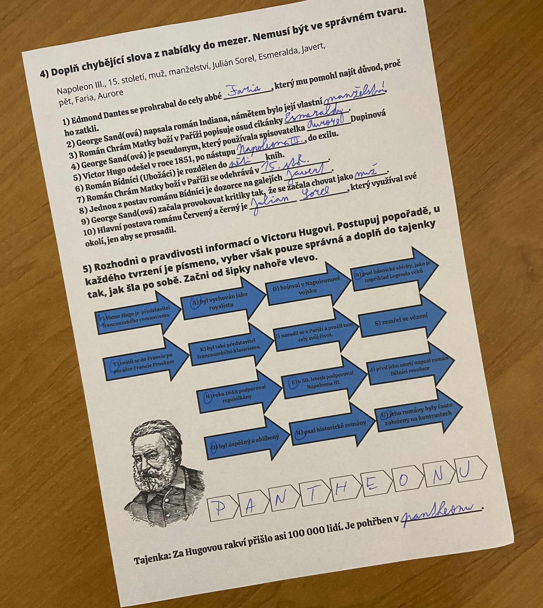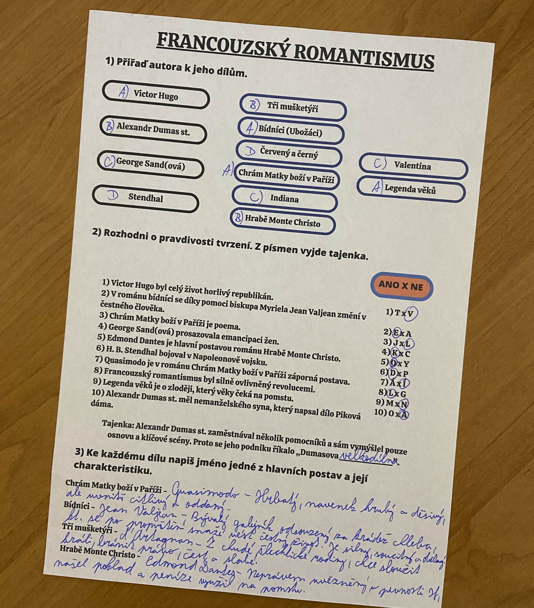 Jedná se o vzdělávací materiál pro 2. ročník středních škol. Tento materiál rozvíjí povědomí o francouzském romantismu. Žáci se látku naučí zábavnou formou.