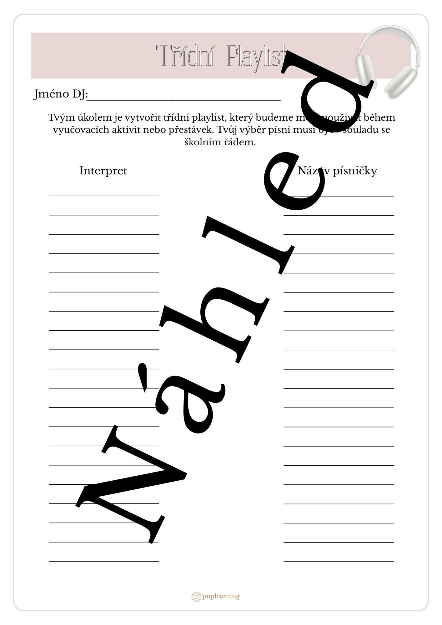 - Úkolem každého žáka je vytvořit třídní playlist, který můžete používat