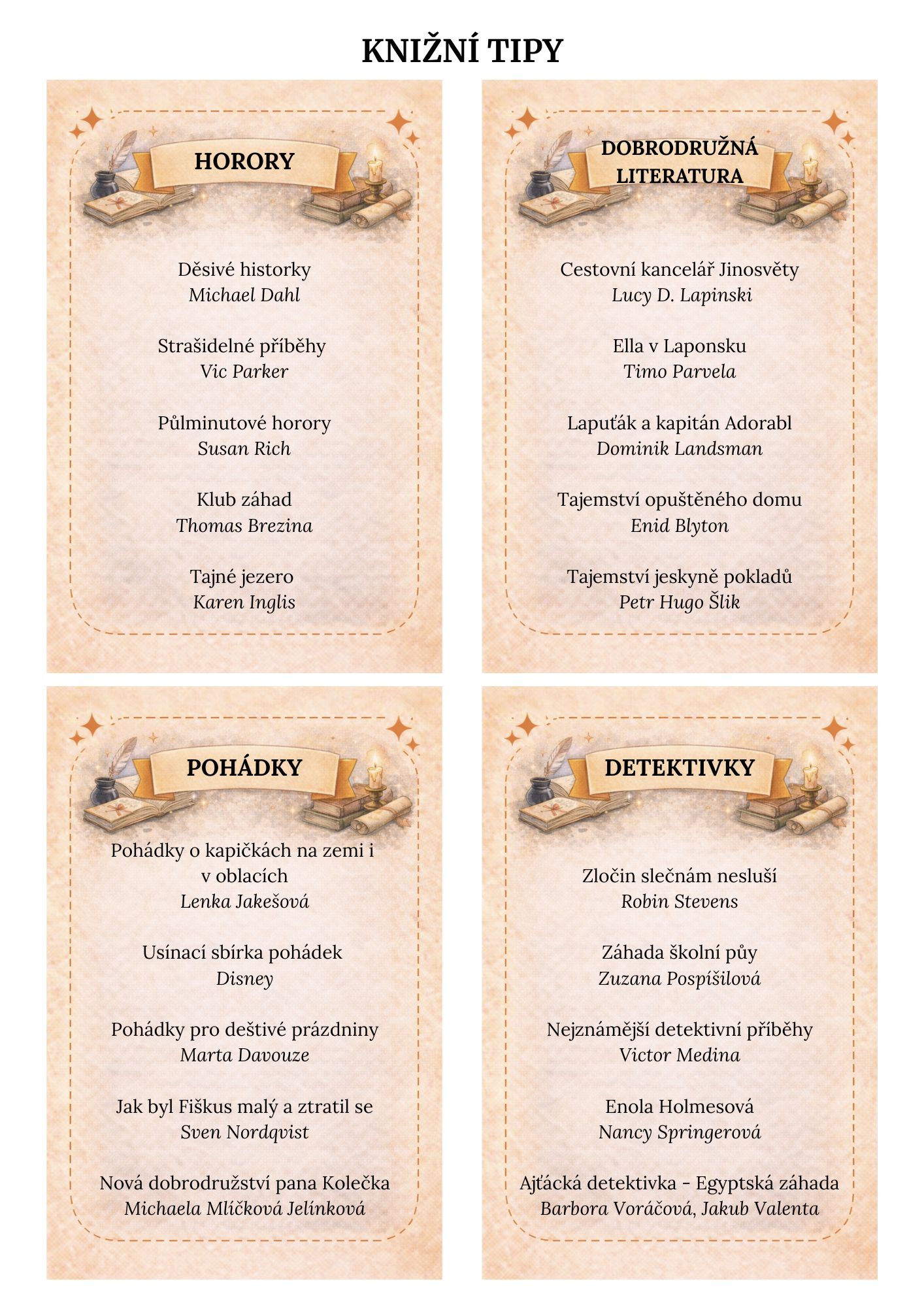 Materiál je vhodný pro 3.–6. ročník ZŠ a lze jej využít jako samostatnou vyučovací hodinu, tematický blok k měsíci knihy nebo jako opakování učiva.
