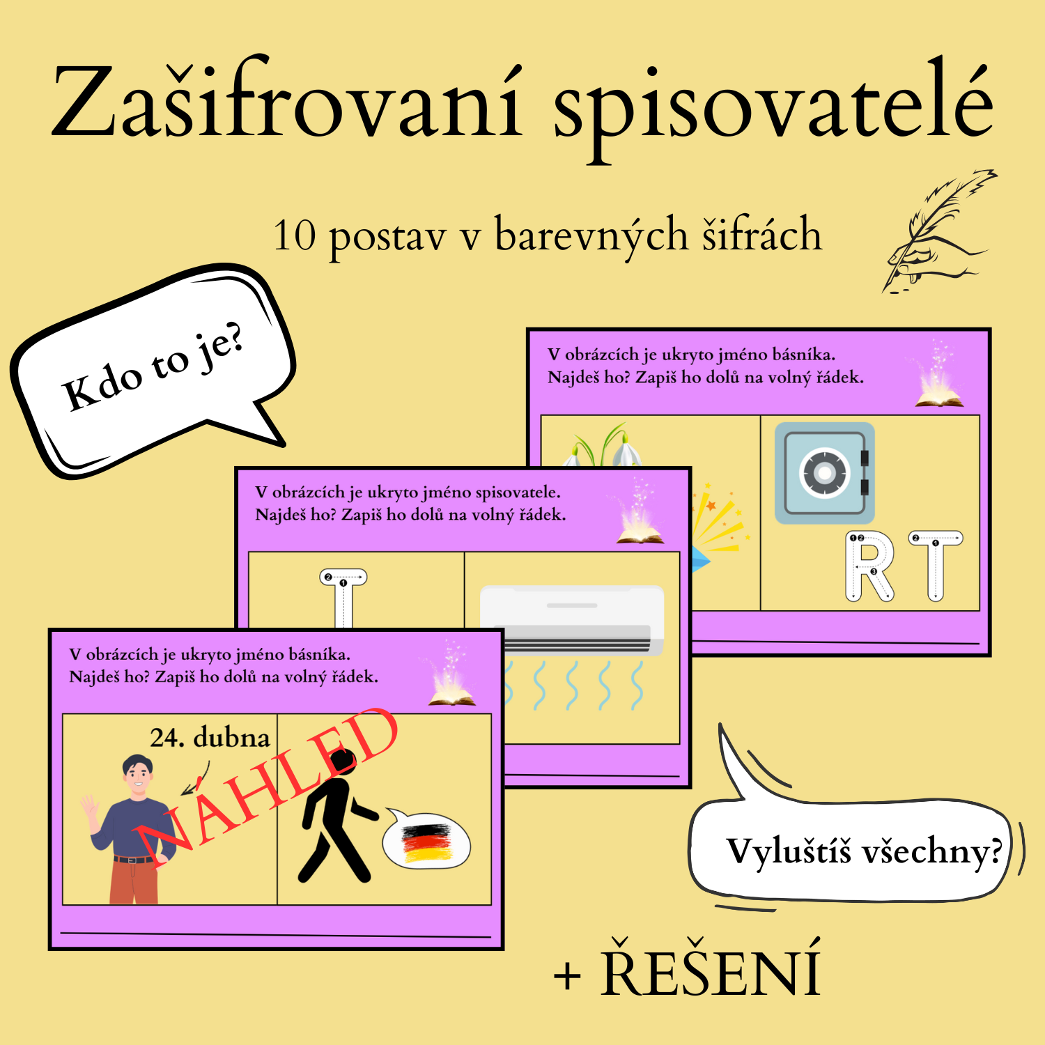 Na následujících stranách najdete zašifrovaná jména 10 českých autorů. Jsou to jak spisovatelé tak i básníci.