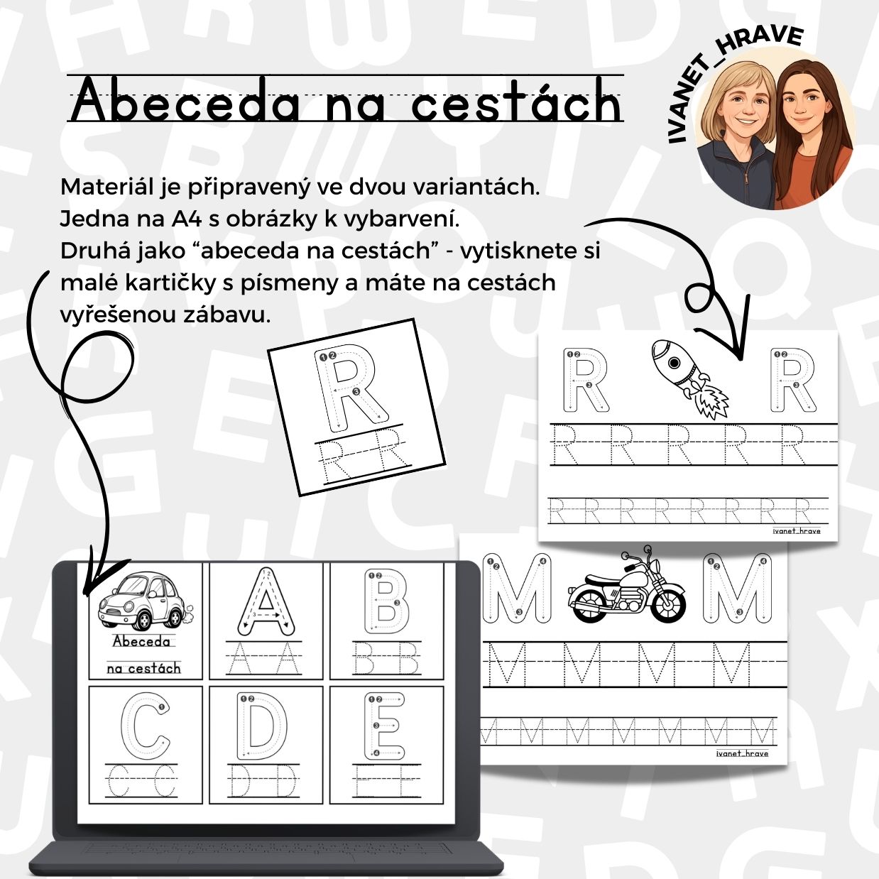 Materiál jsme připravili ve dvou variantách. Jeden na velkou A4, druhá varianta nám slouží na cesty.
