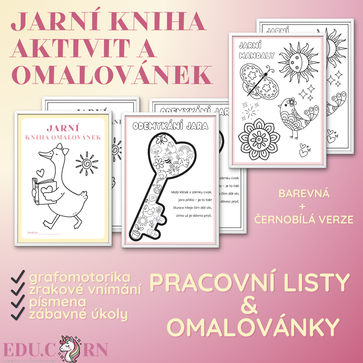 🌸 Jarní kniha aktivit a omalovánek | 16 pracovních listů (Print & Go)