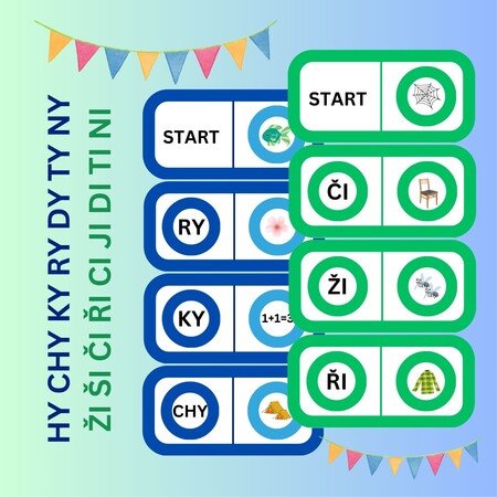 Materiál slouží k procvičení tvrdých a měkkých souhlásek, formou principu domina.