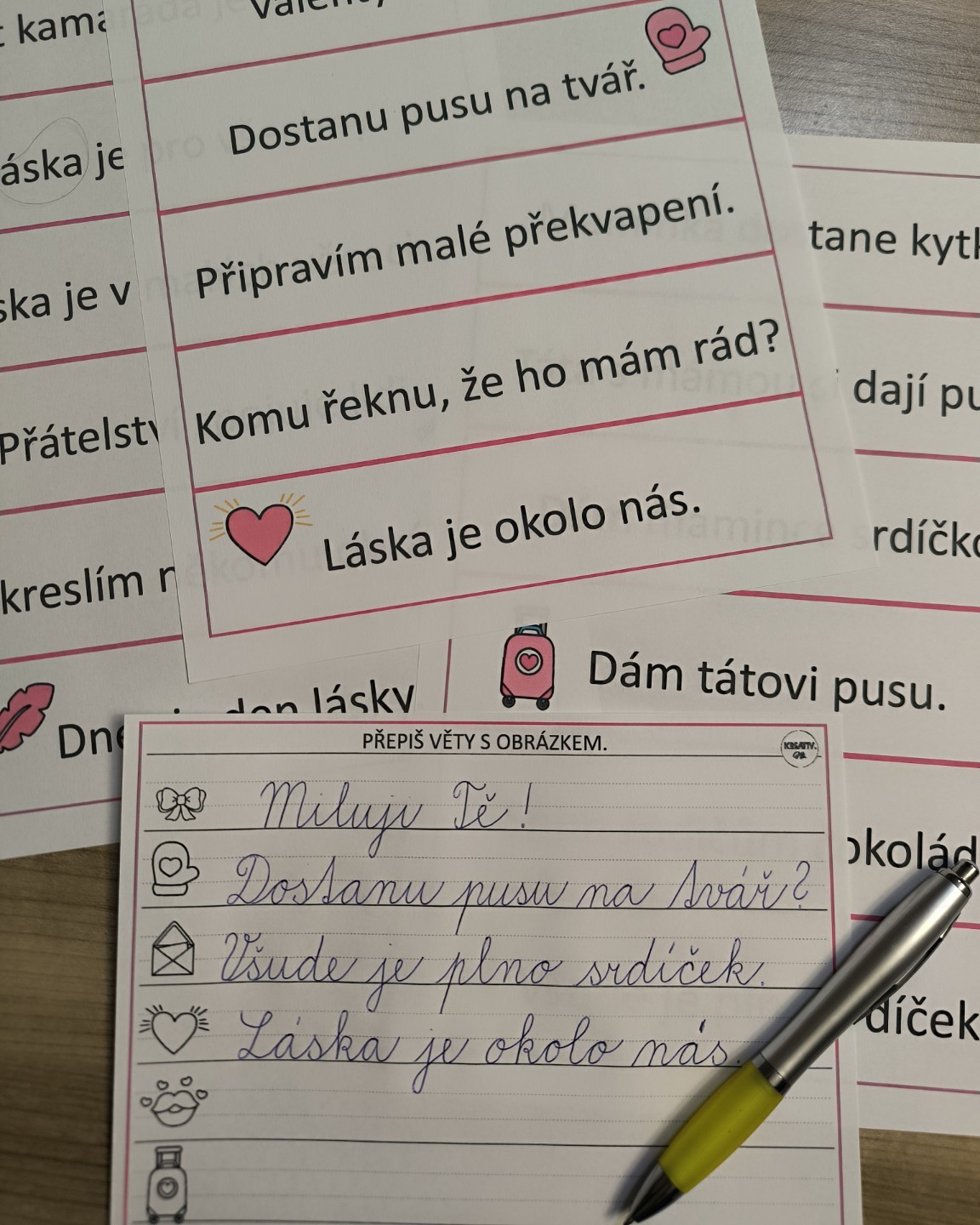 - Přepis vět, jako klidnější práci s pracovními listy, kde žáci opisují věty podle obrázků.