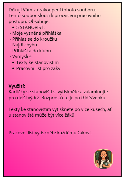 Texty ke stanovištím vytiskněte po více kusech, ať u stanoviště může být více žáků.