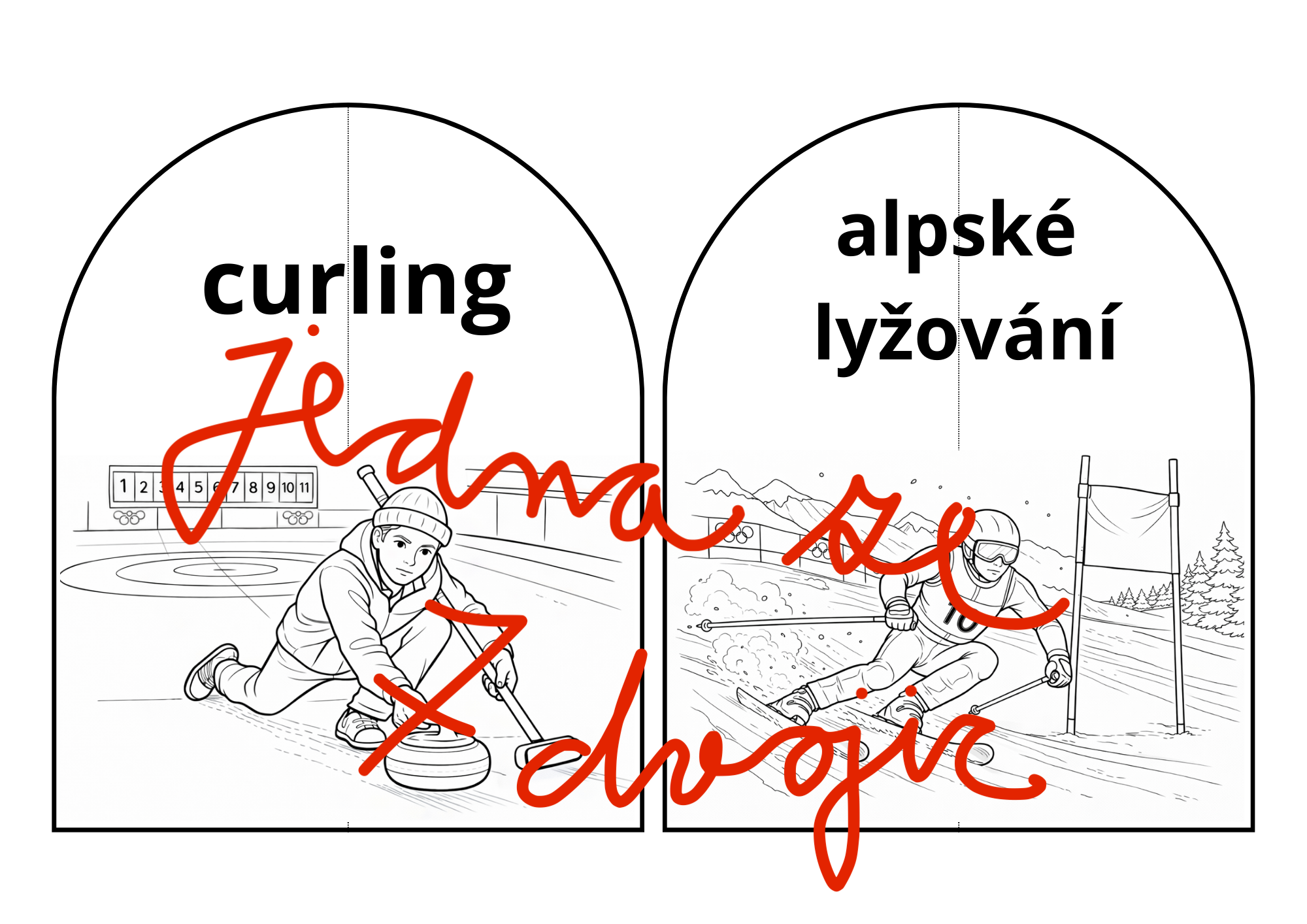 Při práci s omalovánkami mohou žáci nejprve pozorovat ilustraci a popisovat, co na obrázku vidí. Učitel je může vést k pojmenování výstroje, prostředí a pohybu sportovce. Následuje vybarvování, při kterém mohou žáci pracovat realisticky podle skutečnosti, nebo zvolit vlastní barevné pojetí.