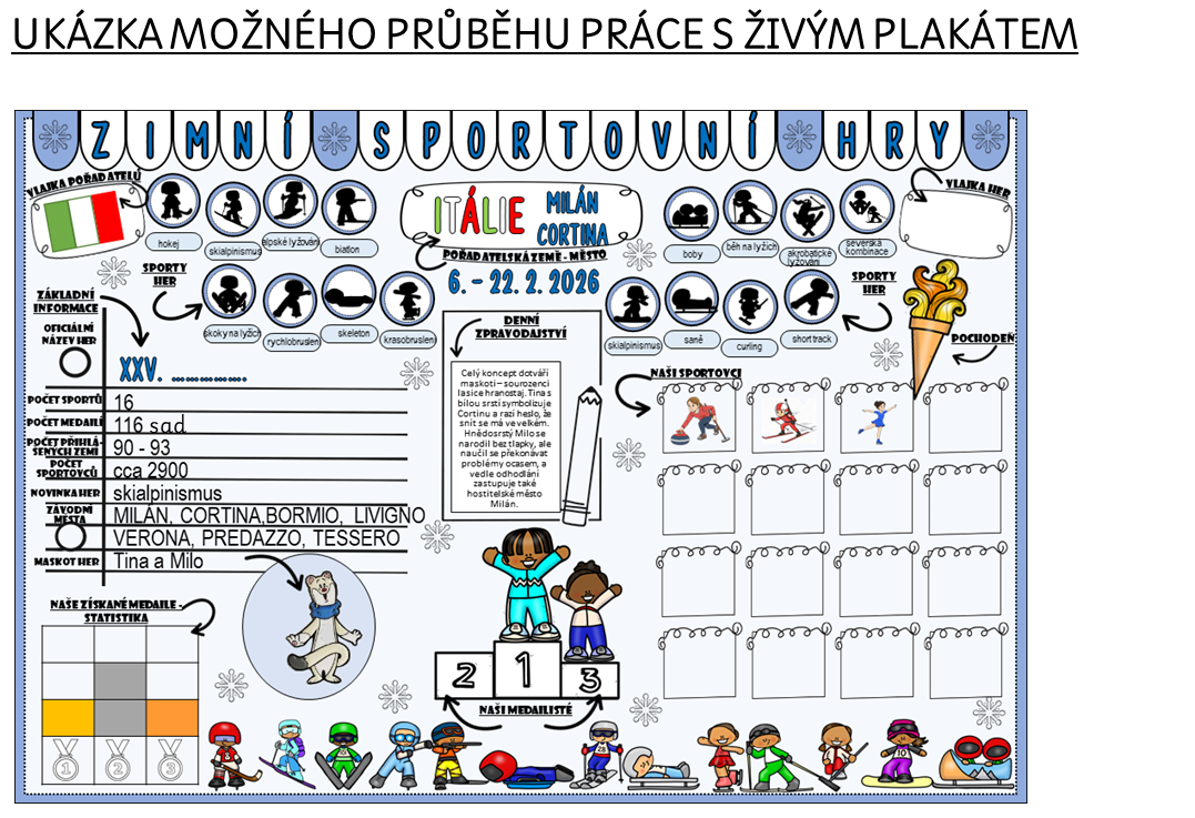 Blíží se únor 2026 a s ním i svátek všech sportovních fanoušků – zimní hry v Miláně a Cortině. Jak ale tuto velkolepou událost přenést do lavic tak, aby se z ní stala smysluplná vzdělávací aktivita a ne jen pasivní sledování výsledků? Odpovědí je Živý plakát.