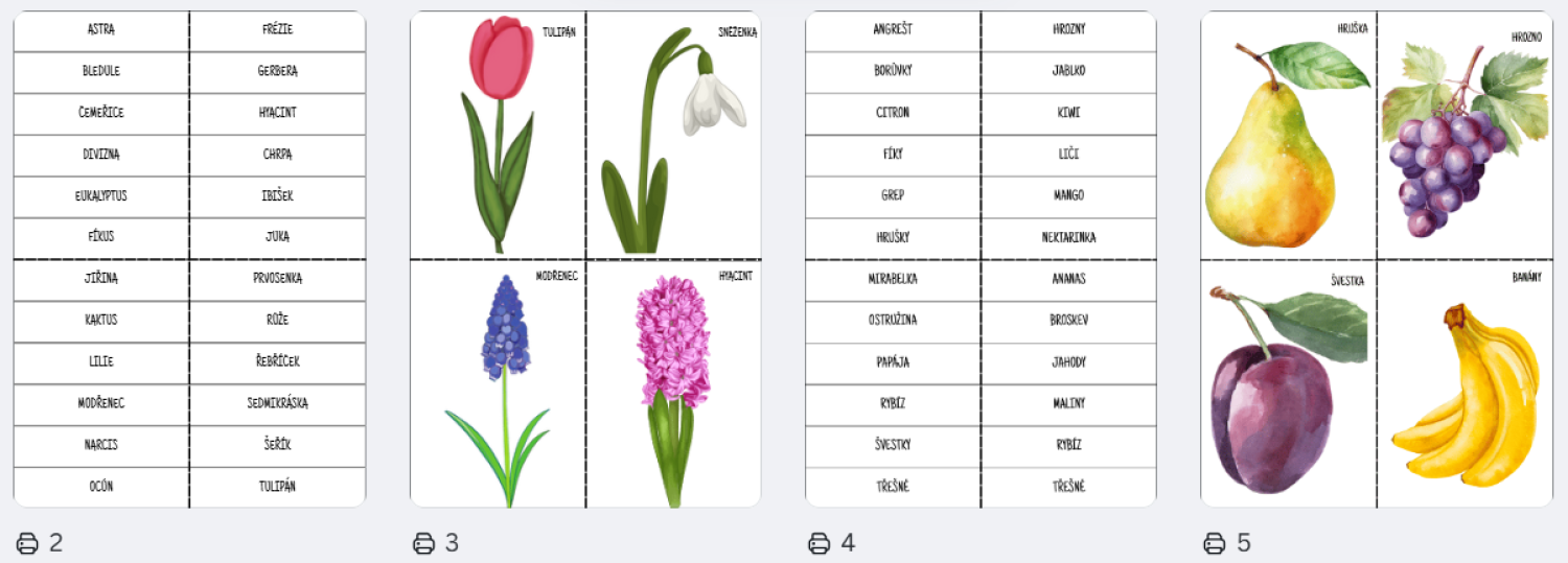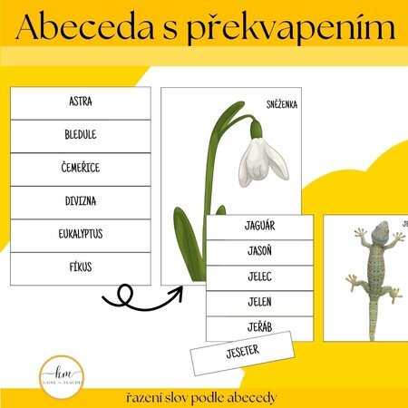 Dále mohou napsat slovo z obrázku na lísteček a zařadit jej na správné místo, nebo vymyslet další slovo, které by mohlo být první, poslední, ...