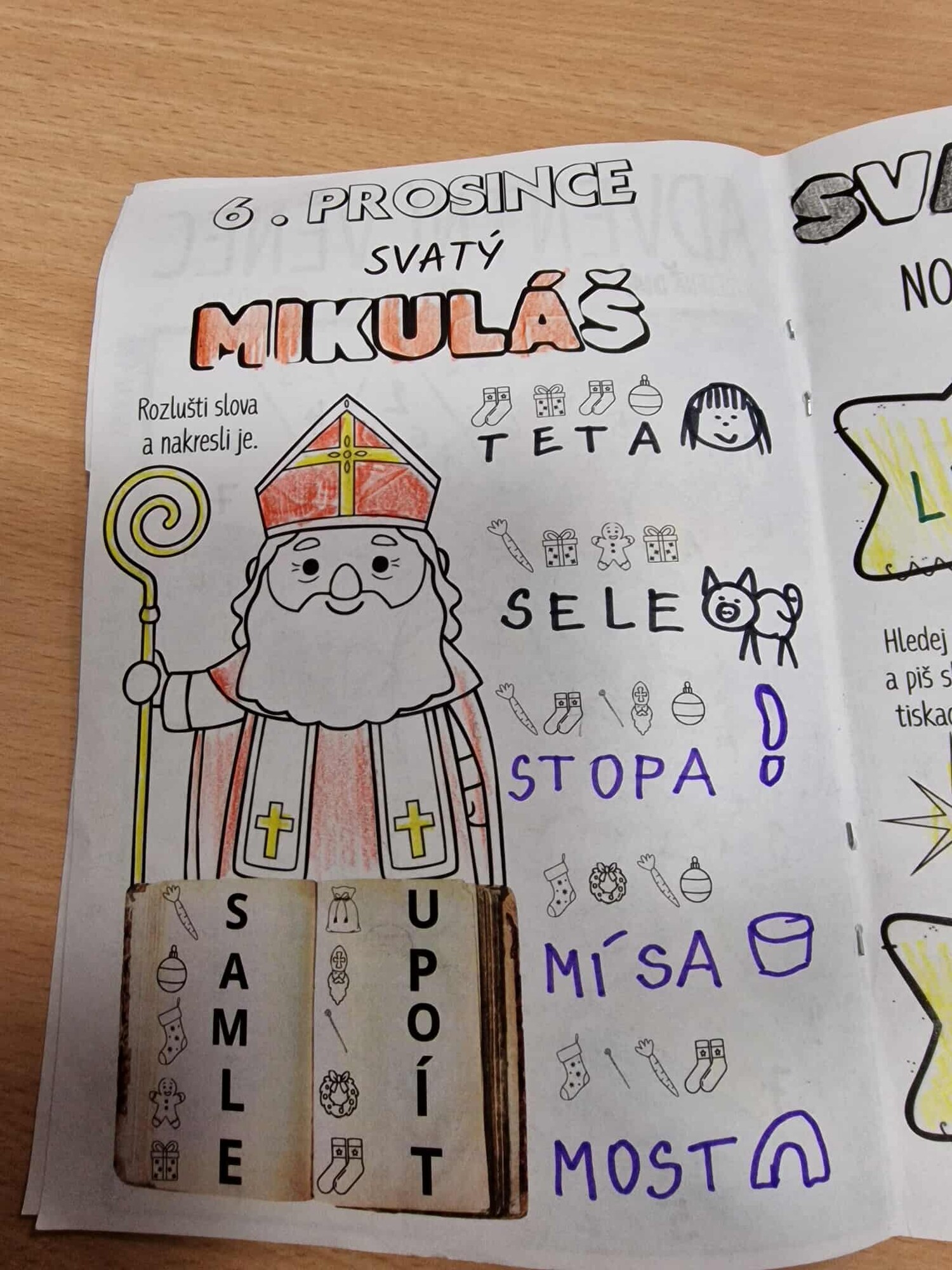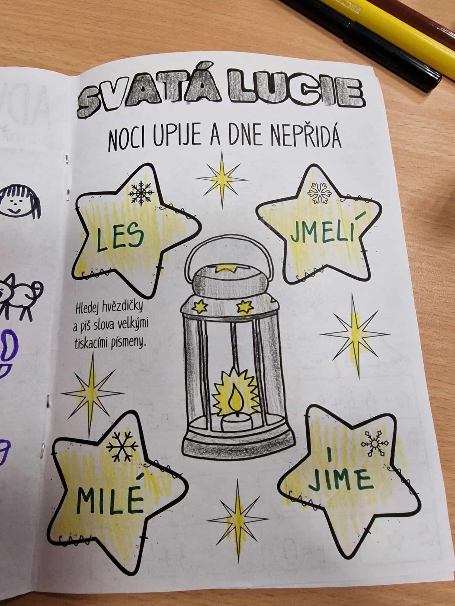 SVATÁ LUCIE ČJ – BĚHACÍ PSANÍ : Děti mají za úkol hledat hvězdičky a psát slova VELKÝMI TISKACÍMI PÍSMENY