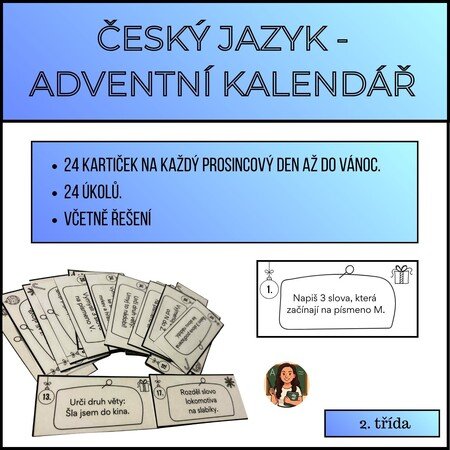 Na kartičce je vždy nějaký úkol z českého jazyka, pokud žák odpoví správně dostane svůj adventní balíček nebo např. bonbon.