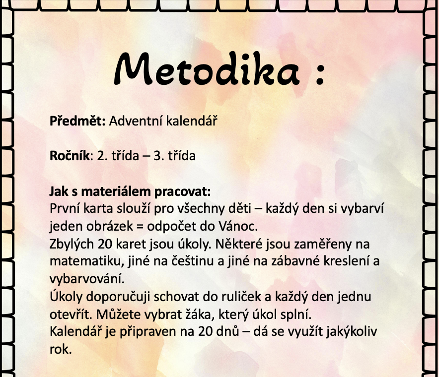 Omalovánka s odpočtem do Vánoc + 20 následujících úkolů: