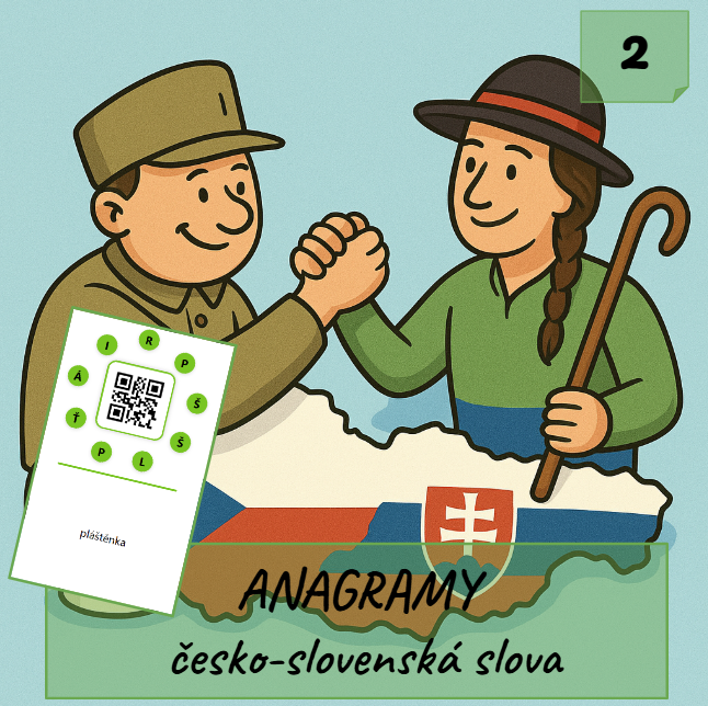 Víte, co znamená cencúľ ve slovenštině nebo jak se slovensky řekne trychtýř? Vyzkoušejte hru Anagramy – česko-slovenská slova (2. díl) a zjistěte, jak dobře rozumíte jazyku našich sousedů. Úkolem hráčů je rozluštit anagram a určit, co slovo znamená v češtině nebo slovenštině. Hra rozvíjí slovní zásobu a pravopis, čtenářskou gramotnost, porozumění mezi češtinou a slovenštinou, týmovou spolupráci a komunikační dovednosti.