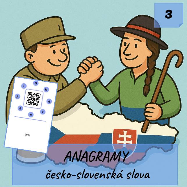 Víte, co znamená táranina ve slovenštině nebo jak se slovensky řekne zemědělec? Vyzkoušejte hru Anagramy – česko-slovenská slova (3. díl) a zjistěte, jak dobře rozumíte jazyku našich sousedů. Úkolem hráčů je rozluštit anagram a určit, co slovo znamená v češtině nebo slovenštině. Hra rozvíjí slovní zásobu a pravopis, čtenářskou gramotnost, porozumění mezi češtinou a slovenštinou, týmovou spolupráci a komunikační dovednosti.