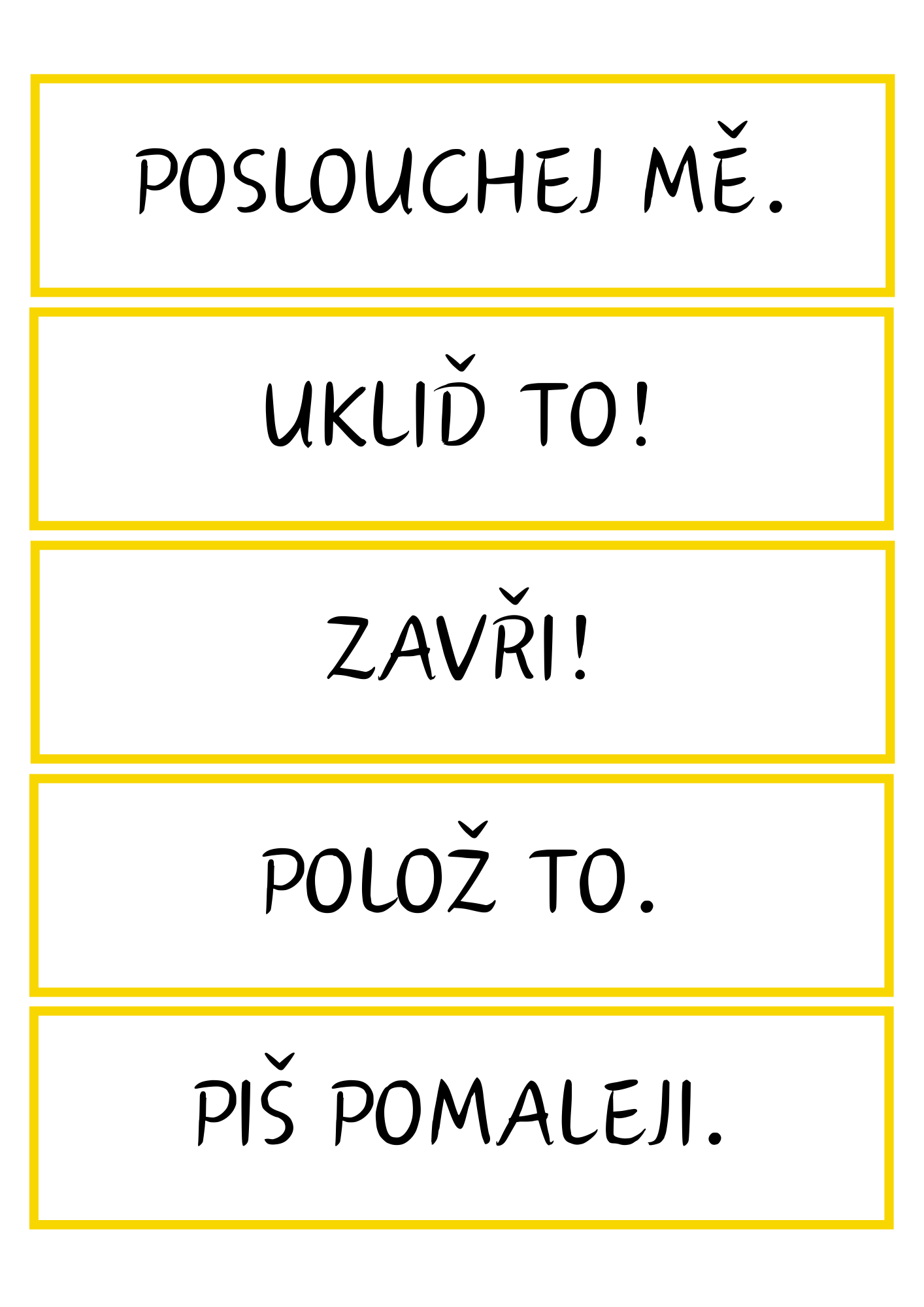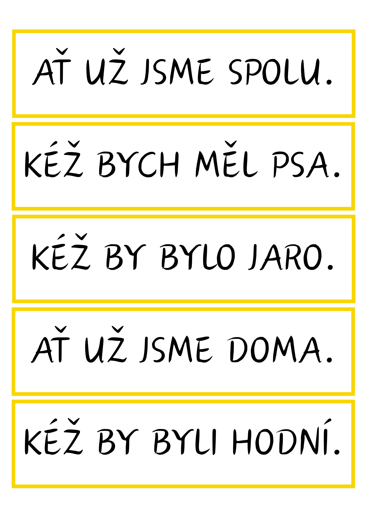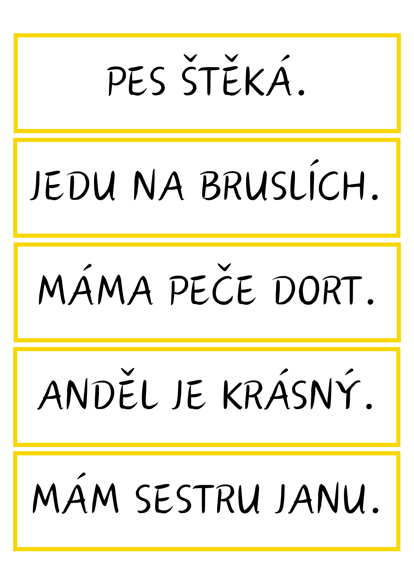 - krátké, jednoduché věty vhodné pro začínající čtenáře