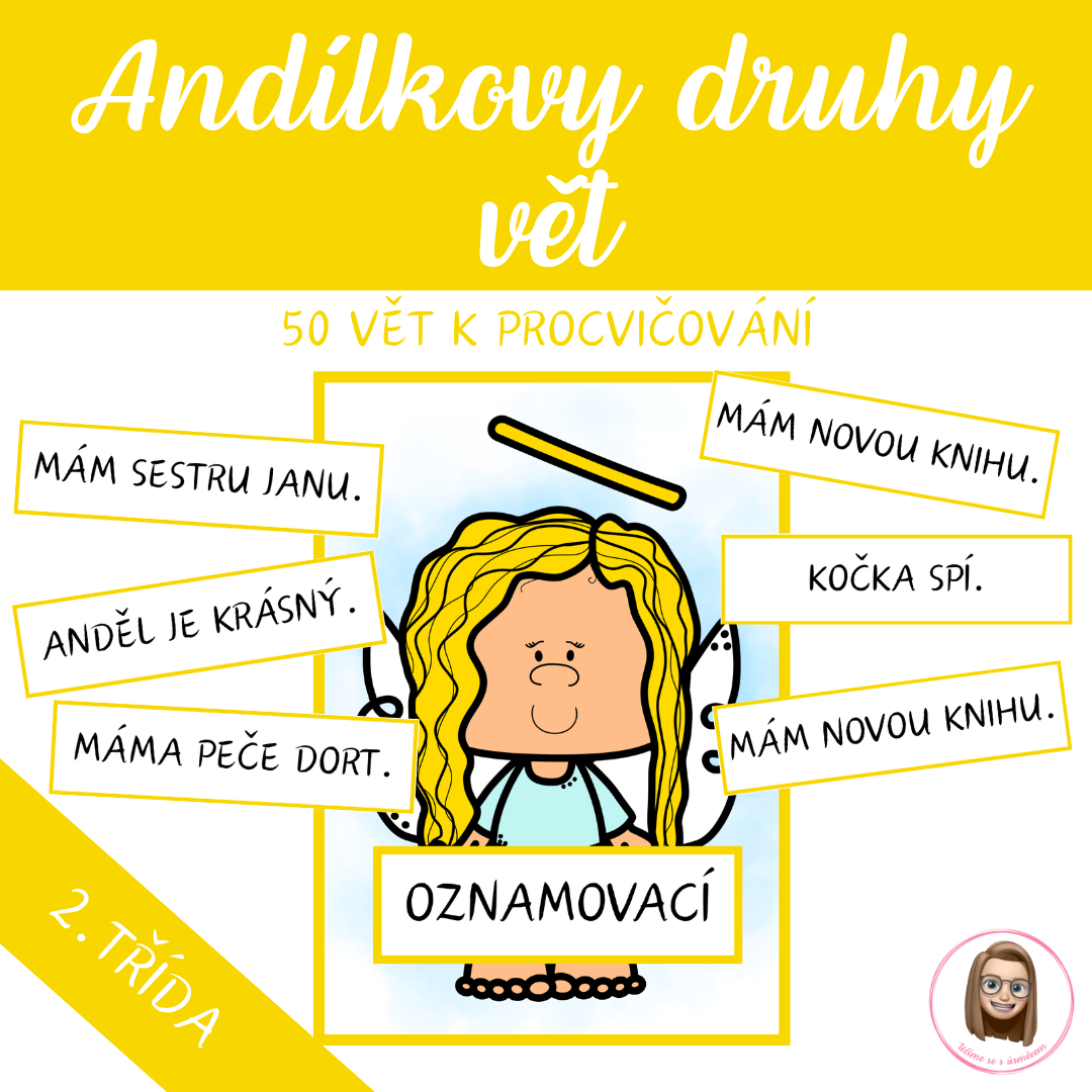 Procvičte druhy vět s 4 andílky a 60 kartičkami s větami. Tento materiál dětem pomůže upevnit rozlišení oznamovacích, tázacích, rozkazovacích a přacích vět pomocí přehledných kartiček a roztomilých andílků, ke kterým mají věty přiřazovat.