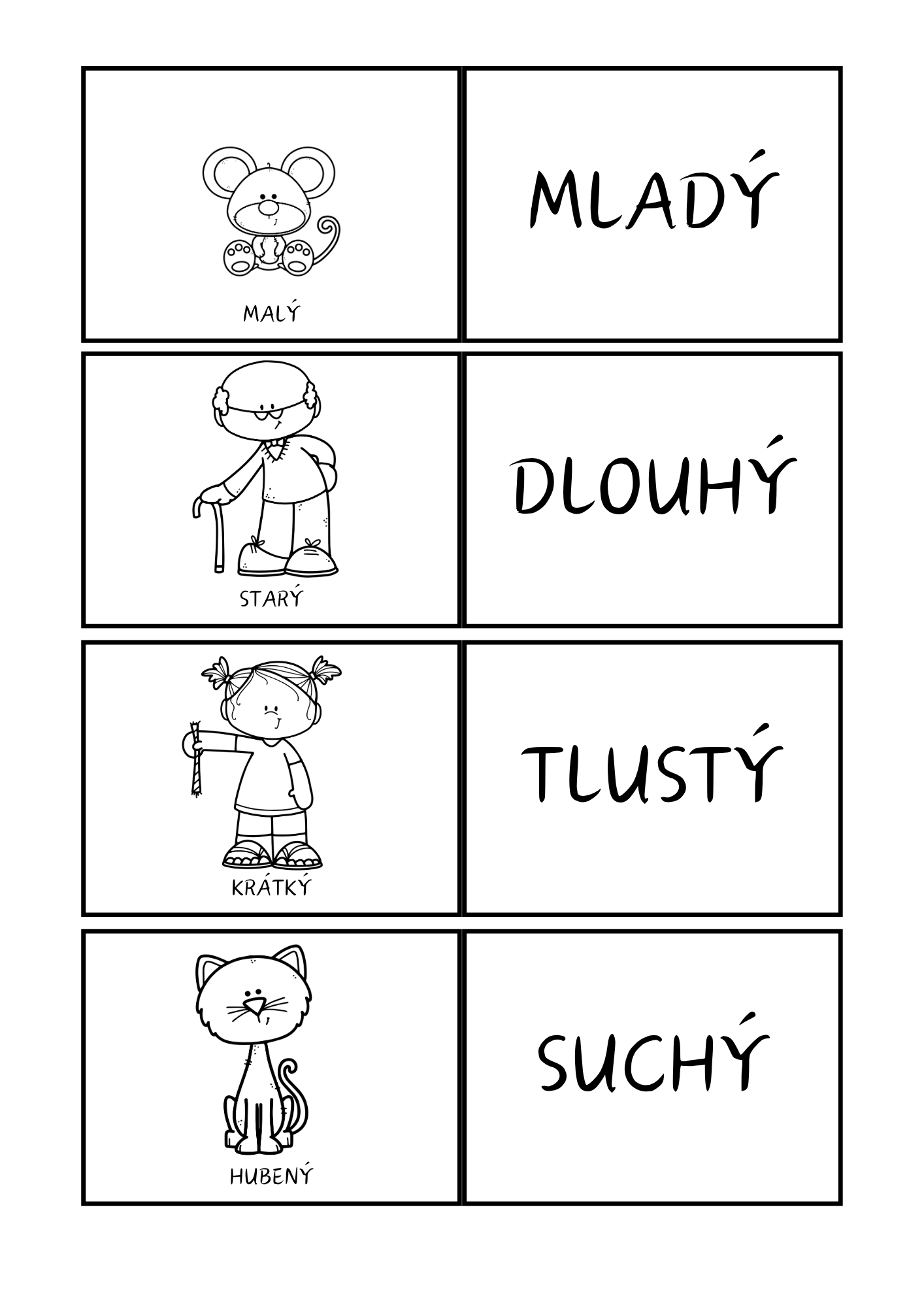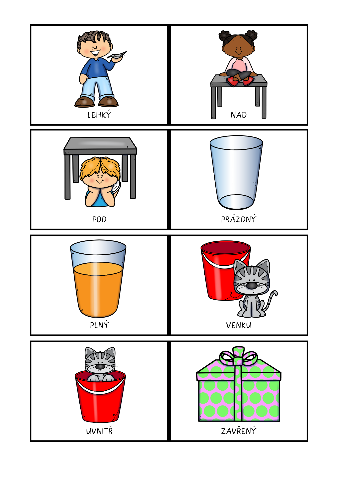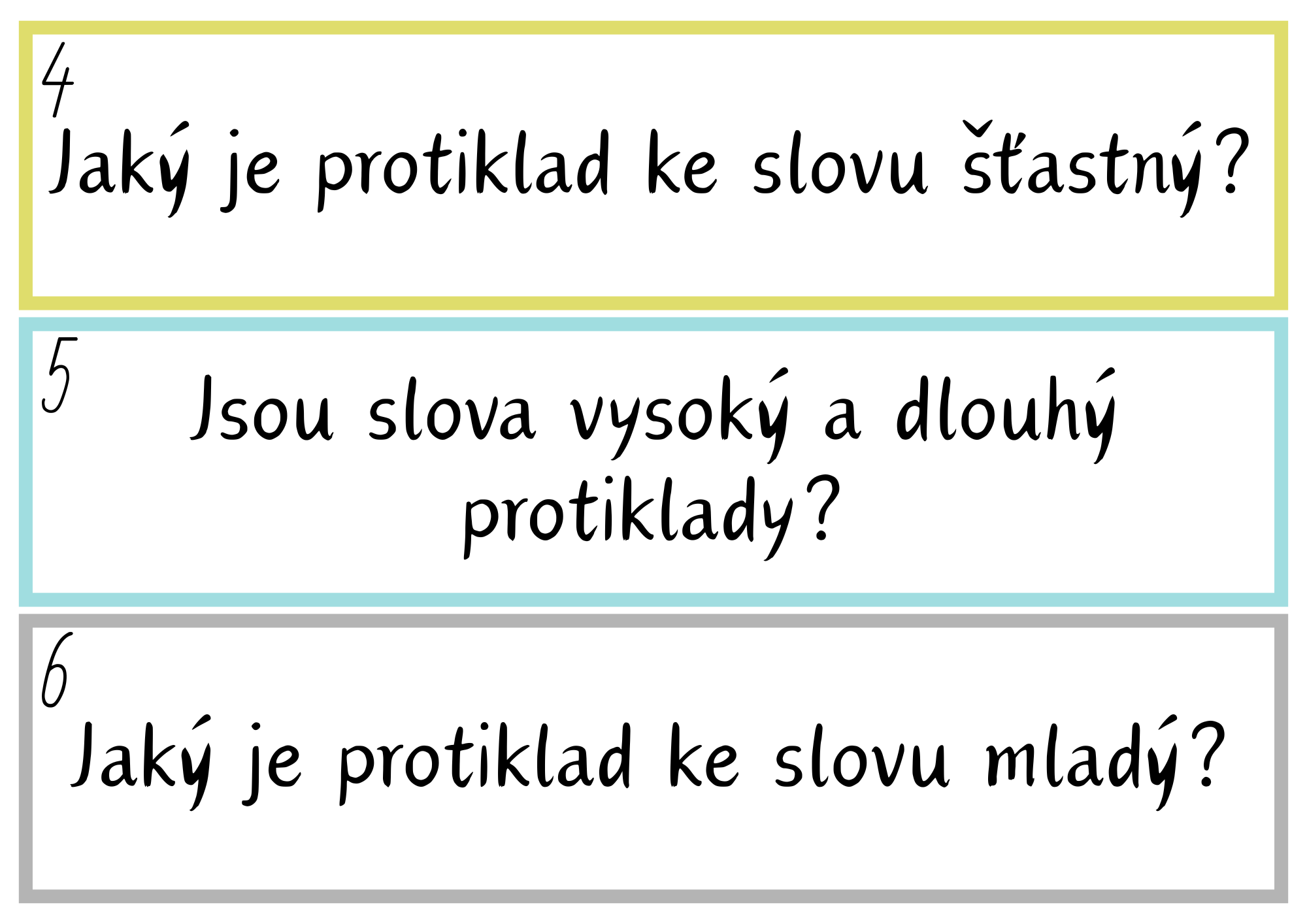 - Procvičovací kartičky – 72 kartiček k tvorbě dvojic, pexesu nebo hře „Najdi svůj protiklad“.