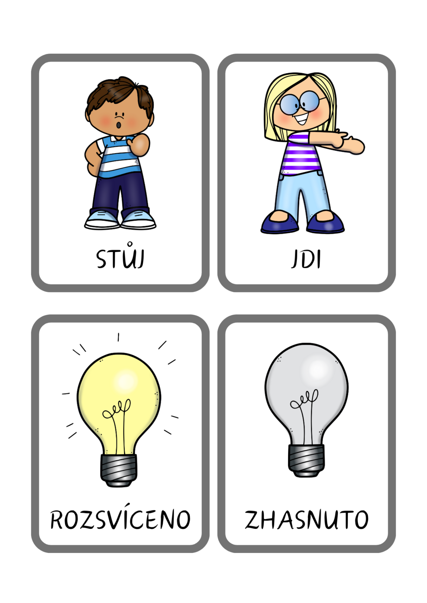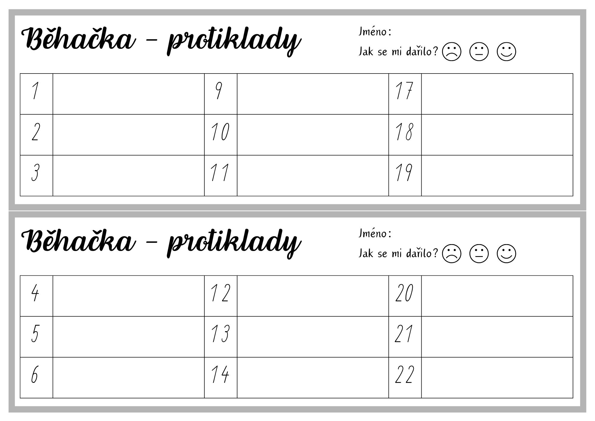 Vše je připraveno v barevné i černobílé variantě, ideální k tisku, laminaci a opakovanému využití.