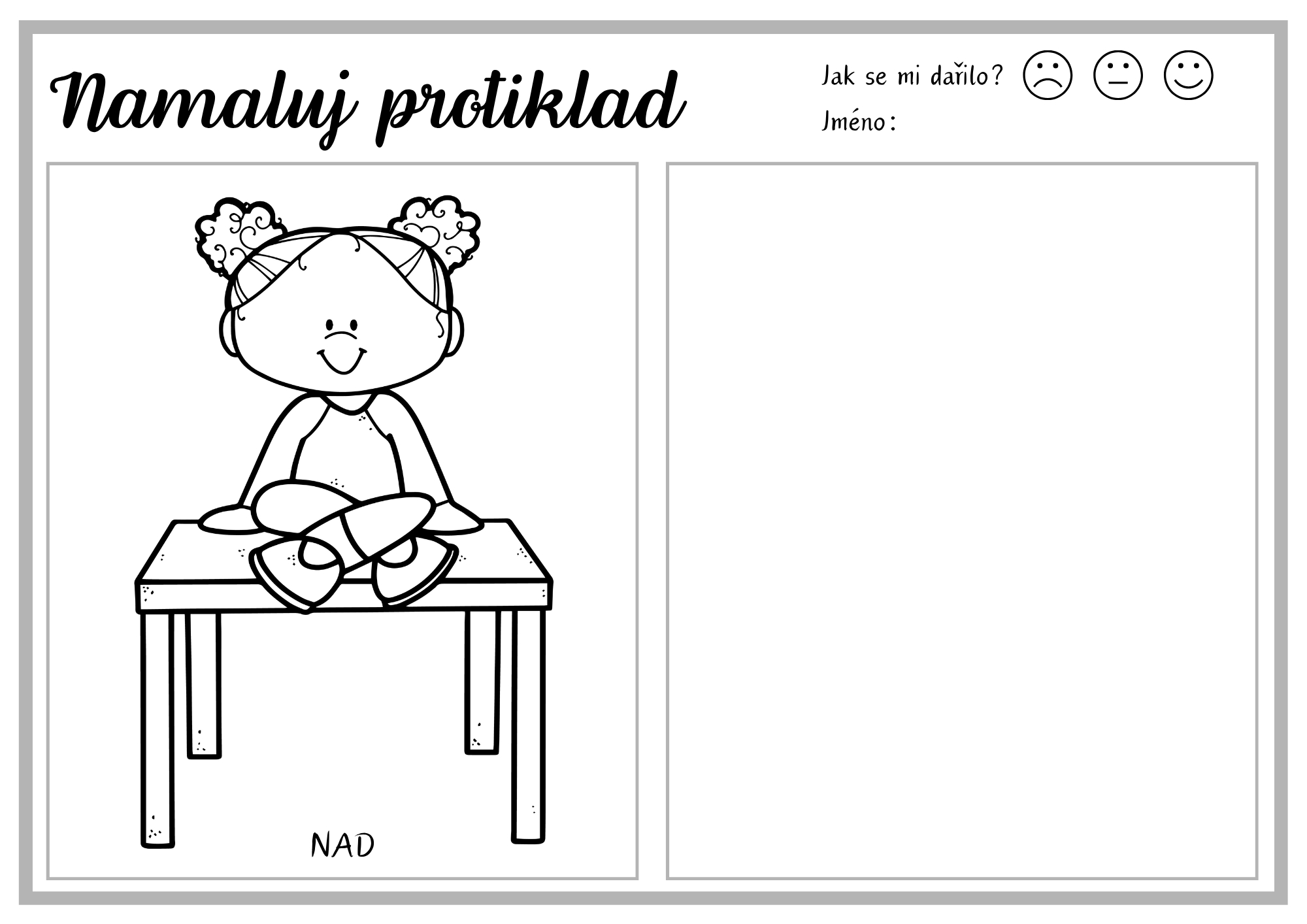 - Dokreslovací pracovní listy – 17 listů, kde děti dokreslují protikladné situace nebo předměty.