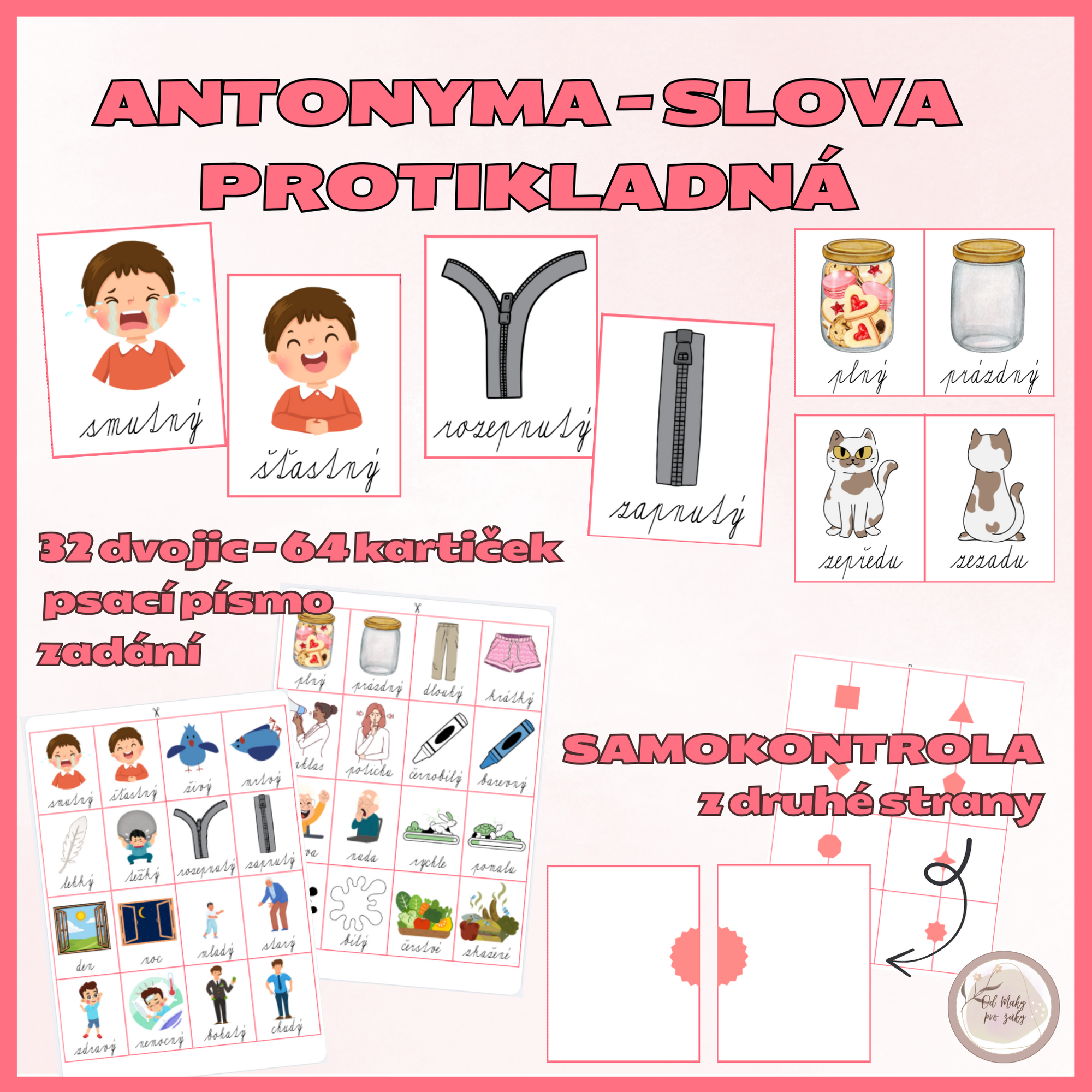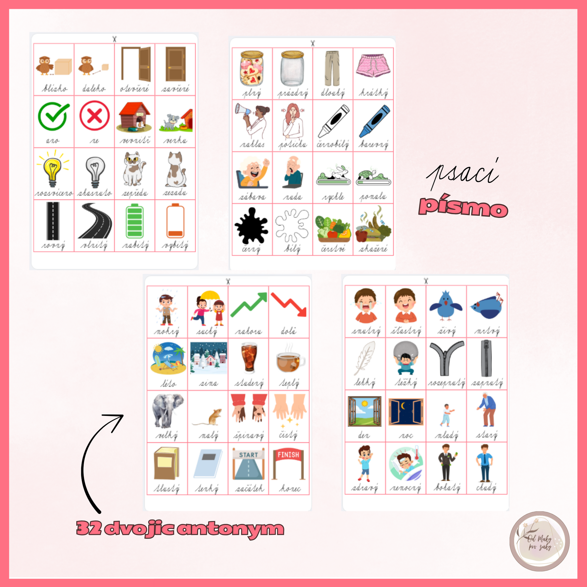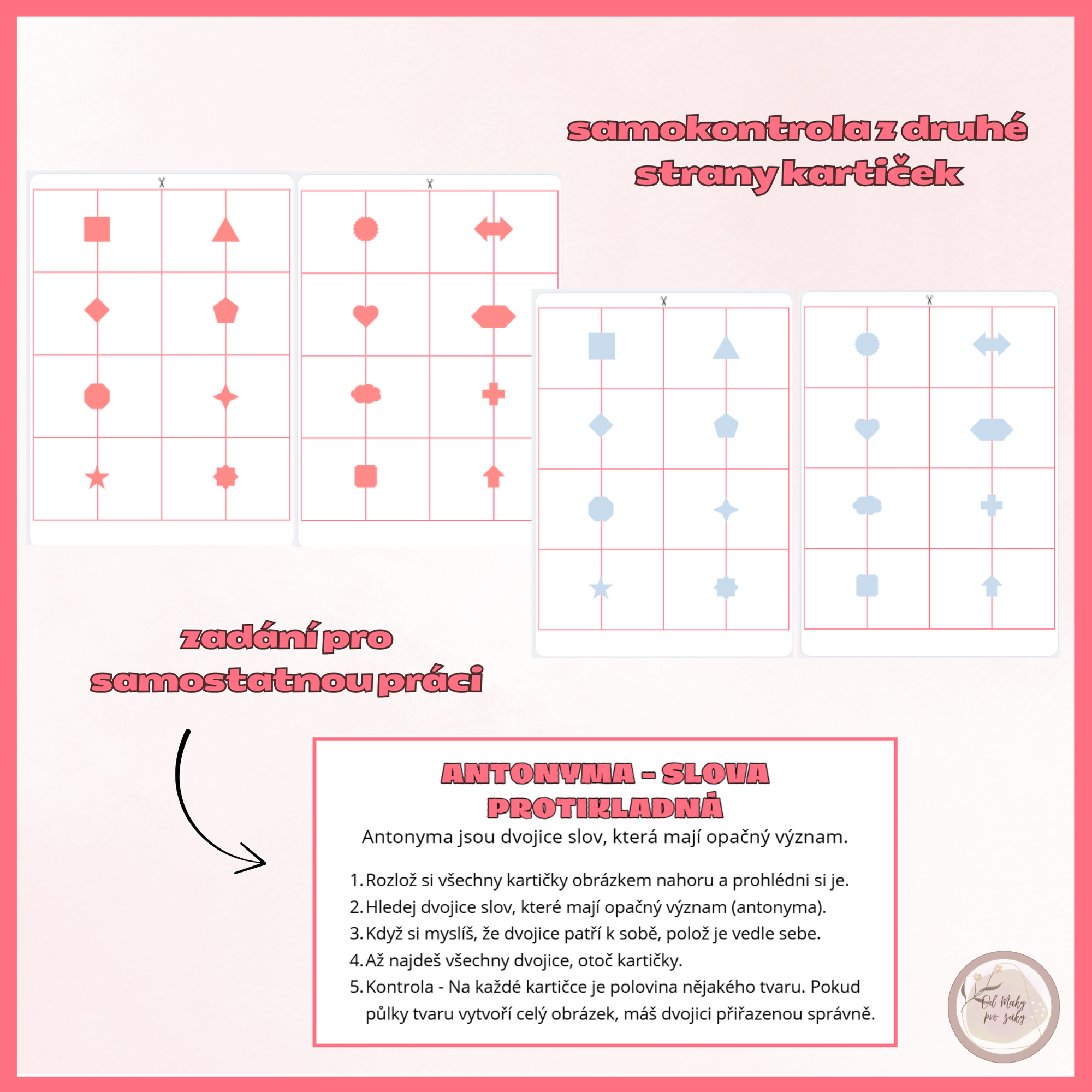- Skupinová práce – kartičky lze využít i při práci ve dvojicích nebo menších skupinách, kde děti společně hledají protiklady.