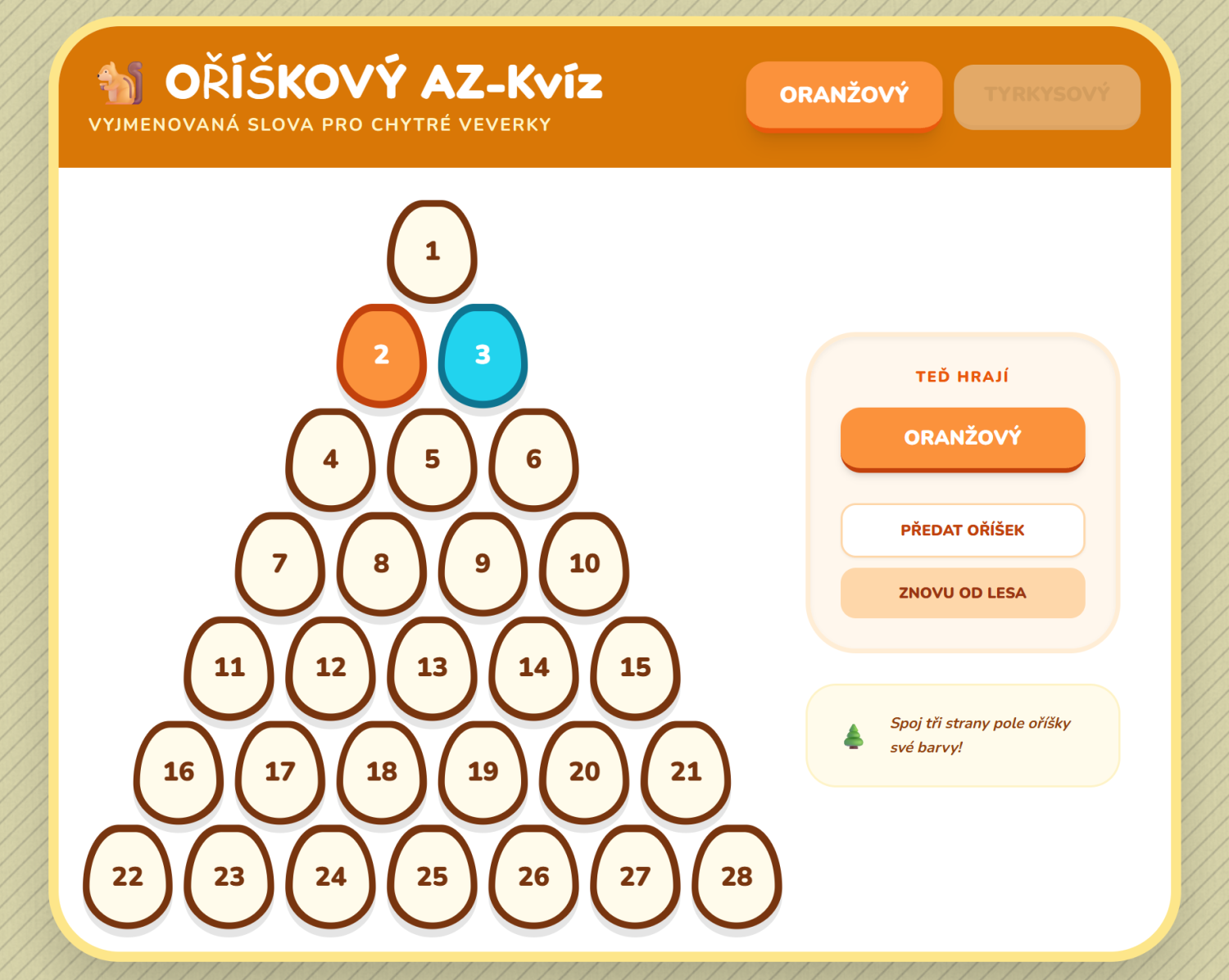 Tato aktivita, pracovně nazvaná Oříškový AZ-Kvíz, slouží jako interaktivní vzdělávací nástroj, který propojuje prvky gamifikace (hry) s cíleným procvičováním českého pravopisu.