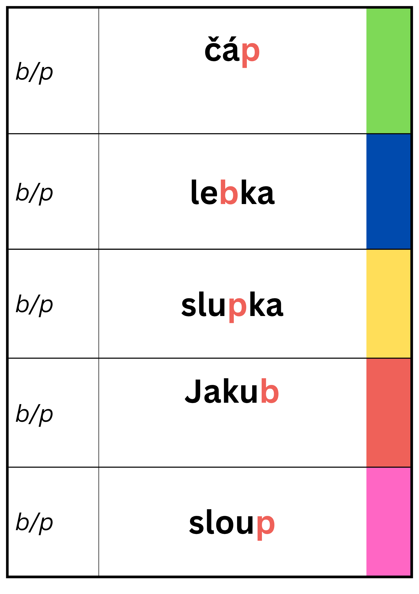 Barevný pravopis - párové souhlásky