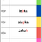 - Karty rozmístíme po třídě a žáci hledají slova a dle barevného pruhu přiřadí slovo do barevné tabulky a doplní pouze danou párovou souhlásku (vybere z levého pruhu na kartě)
