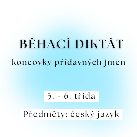 Žáci ve dvojicích nebo malých skupinách spolupracují na běhacím diktátu, při kterém si procvičí pravopis koncovek přídavných jmen. Po třídě nebo na chodbě jsou rozmístěny věty s chybějícími koncovkami přídavných jmen. Jeden žák běží k větě, zapamatuje si ji a vrátí se ji nadiktovat spolužákovi, který ji zapíše včetně správné koncovky. Poté si role vymění. Aktivita rozvíjí nejen pravopis, ale i paměť, spolupráci a pohybovou aktivitu. Na závěr probíhá společná kontrola a vysvětlení pravopisných jevů.