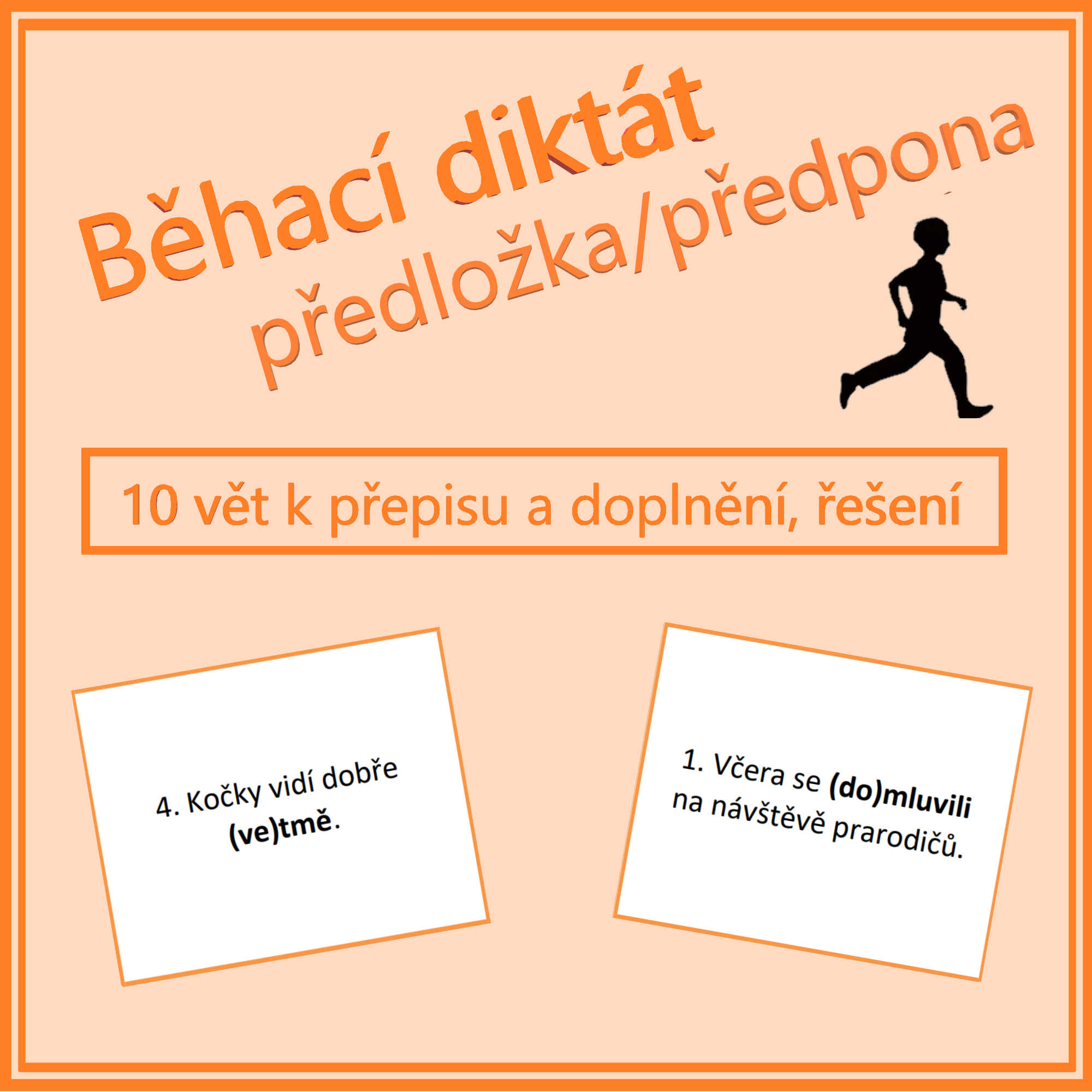 Popis: Zábavná aktivita na procvičení rozlišení předložky a předpony. Aktivita procvičuje také paměť. Žáci pracují ve skupině či dvojici. Karty rozmístíme po třídě nebo na chodbě. Jeden ze skupiny vyrazí, přečte si větu, zkusí si ji zapamatovat, vrátí se a nadiktuje ji spolužákovi. Takto pokračují až k poslední větě, případně se v průběhu prohodí.
