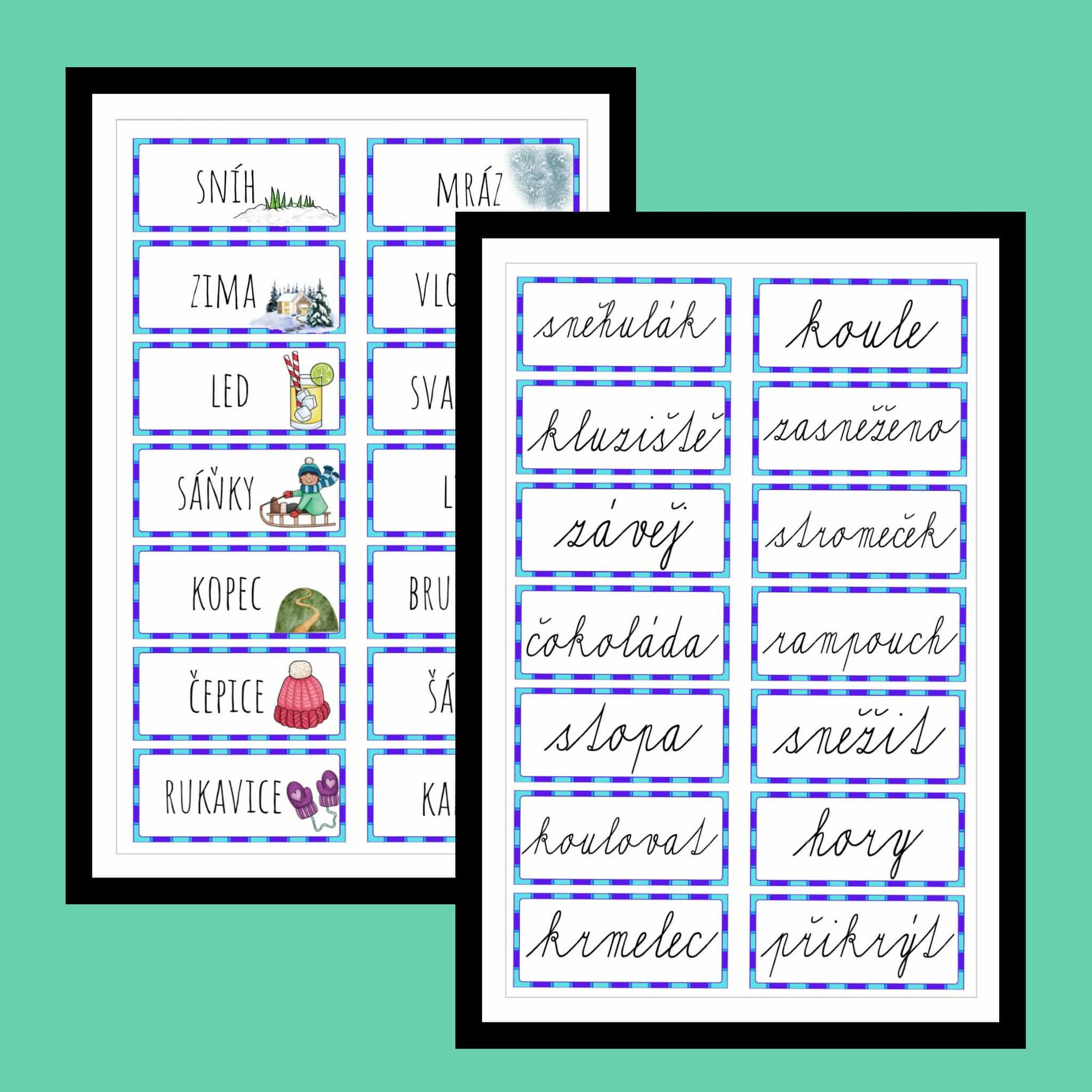 - Kartičky se slovy a větami doporučuji tisknout na tvrdší papír nebo zalaminovat pro dlouhodobé využití.