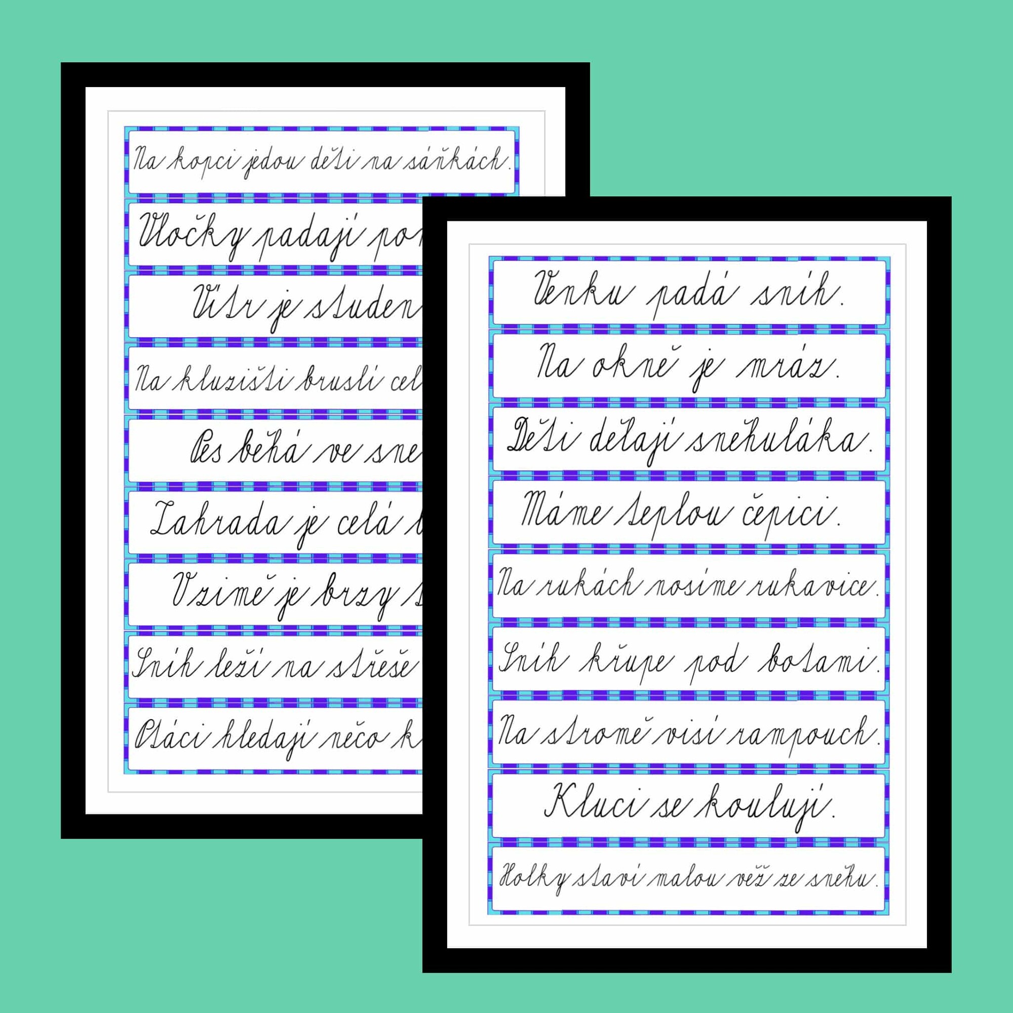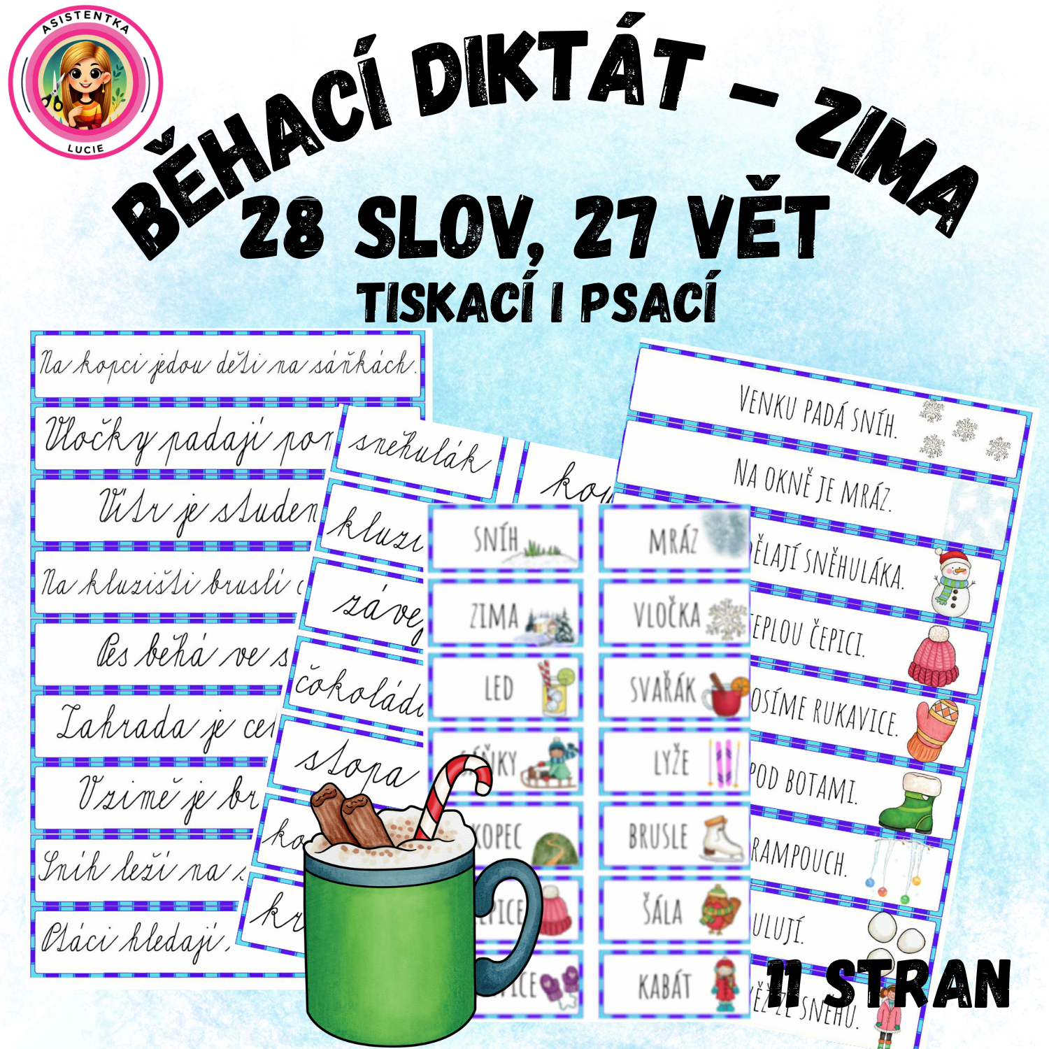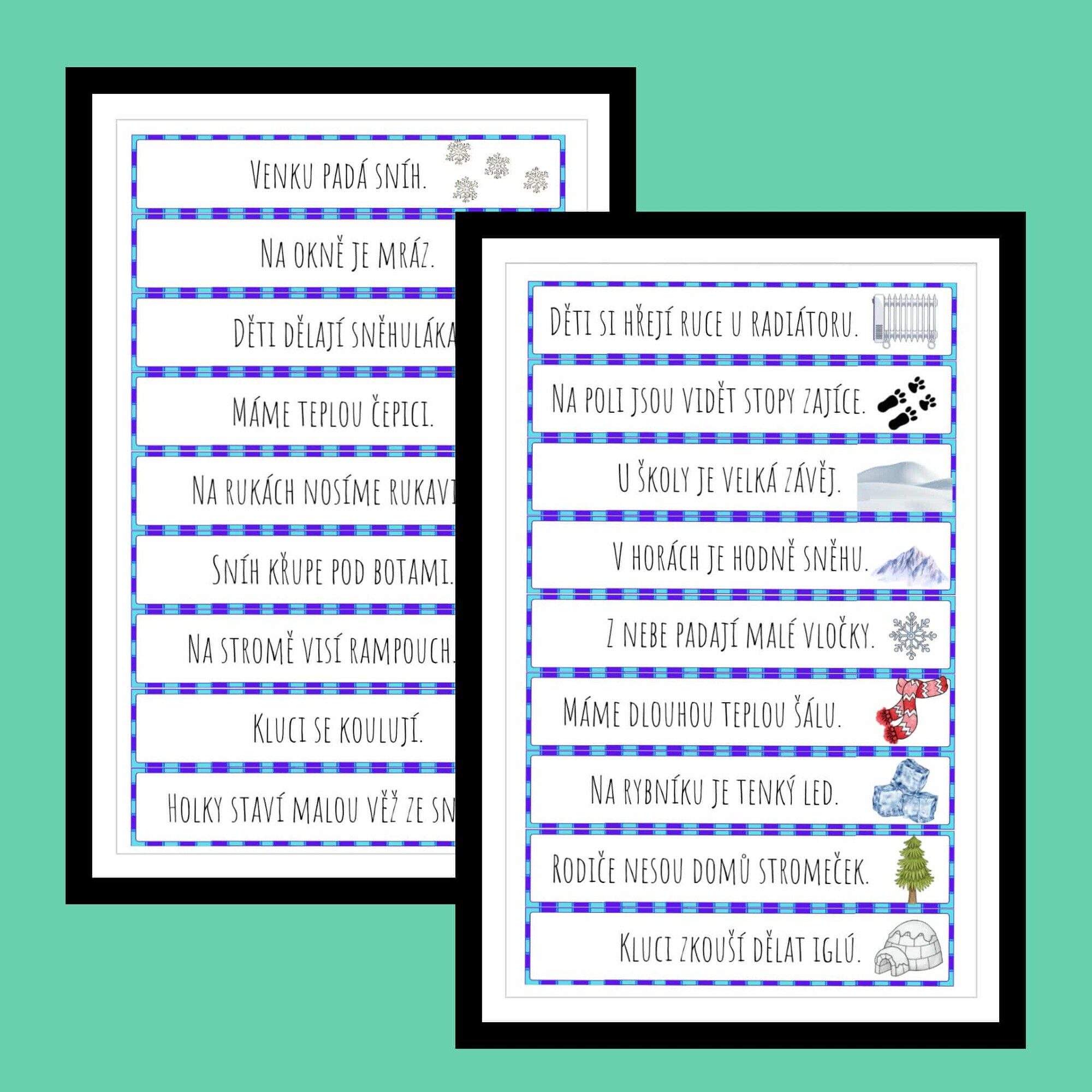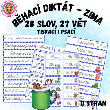 Materiál obsahuje 28 zimních slov a 27 krátkých vět přizpůsobených žákům 2. ročníku ZŠ. Věty jsou jednoduché, srozumitelné, bez složitých jazykových jevů a jsou vhodné pro nácvik čtení, psaní, soustředění a rozvoje pravopisných dovedností.