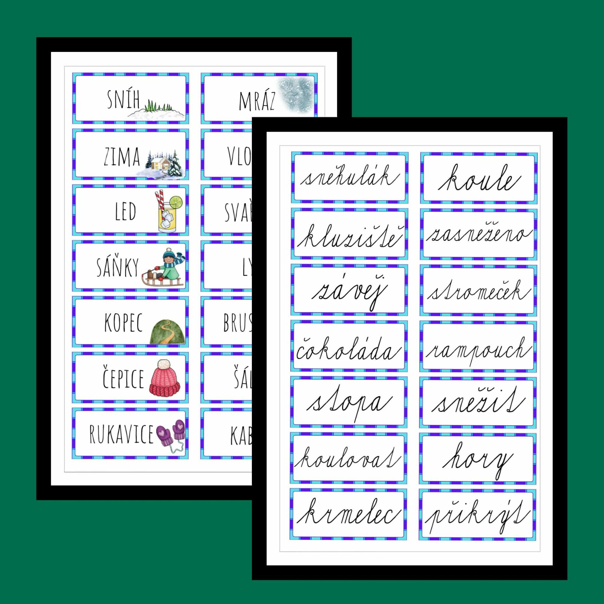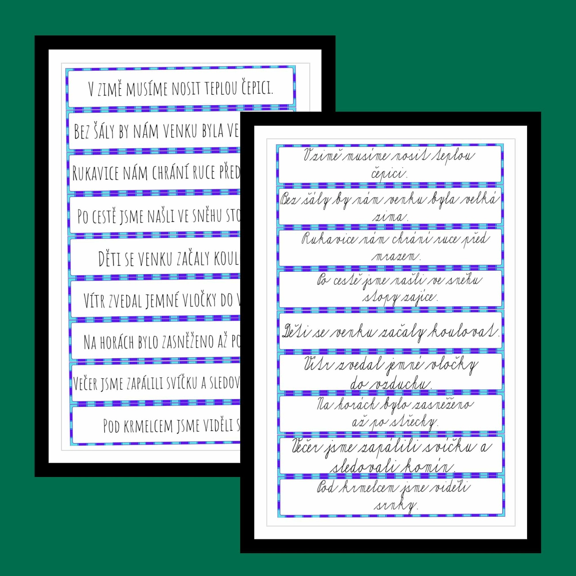 - Kartičky se slovy a větami doporučuji tisknout na tvrdší papír nebo zalaminovat pro dlouhodobé využití.