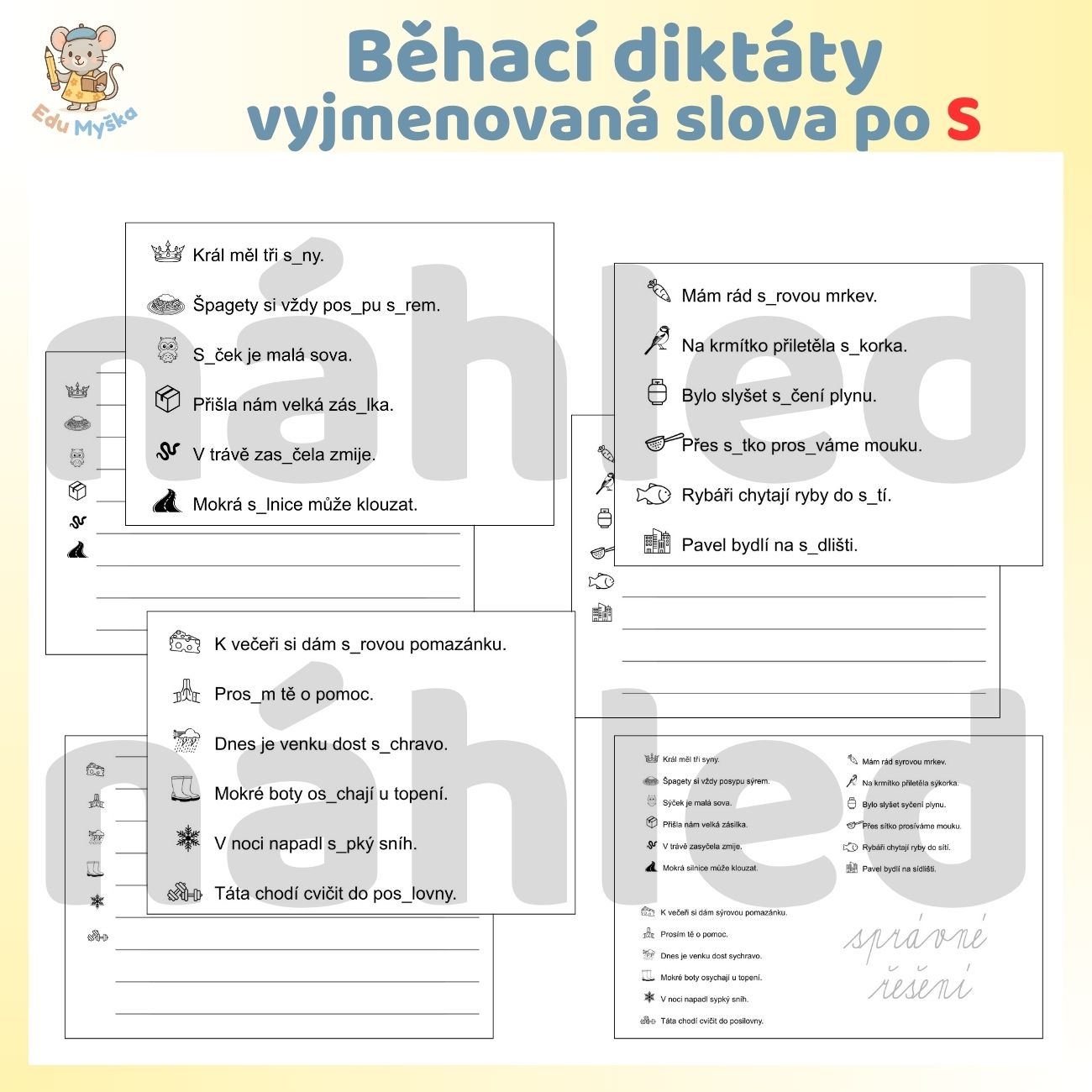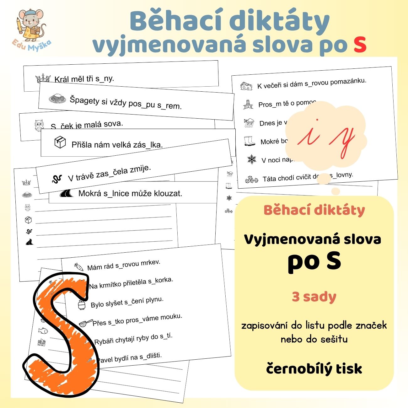 Soubor obsahuje tři sady běhacích diktátů / vět určených k přepisu a doplnění správného I/Y po S.