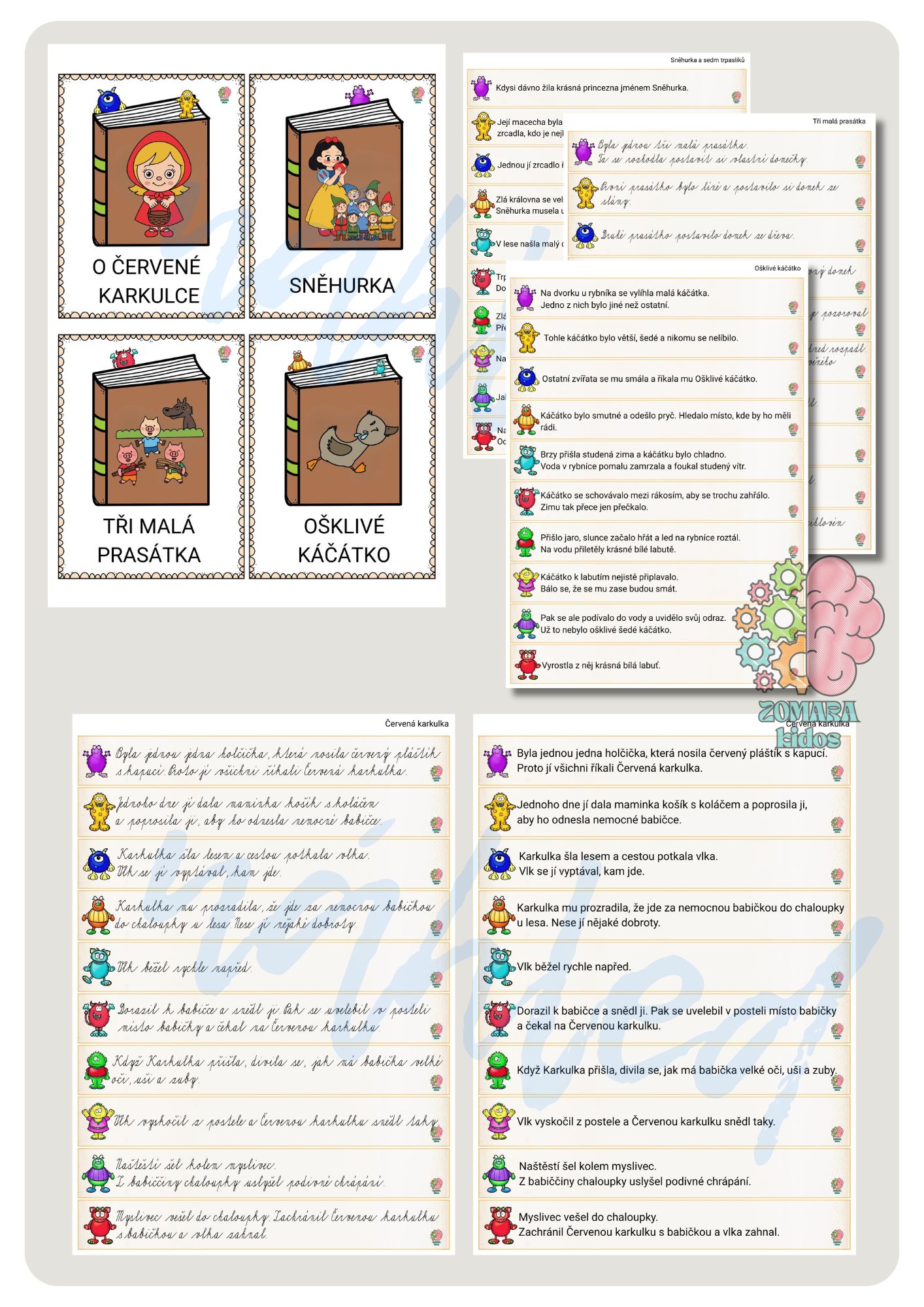 Příšerky pomíchaly pohádky! Děti třídí 40 vět ke 4 známým příběhům a skládají je podle děje. Jednoduchá kontrola pomocí příšerek. Skvělé na běhačku, skupinovou práci i rozvoj čtení s porozuměním.