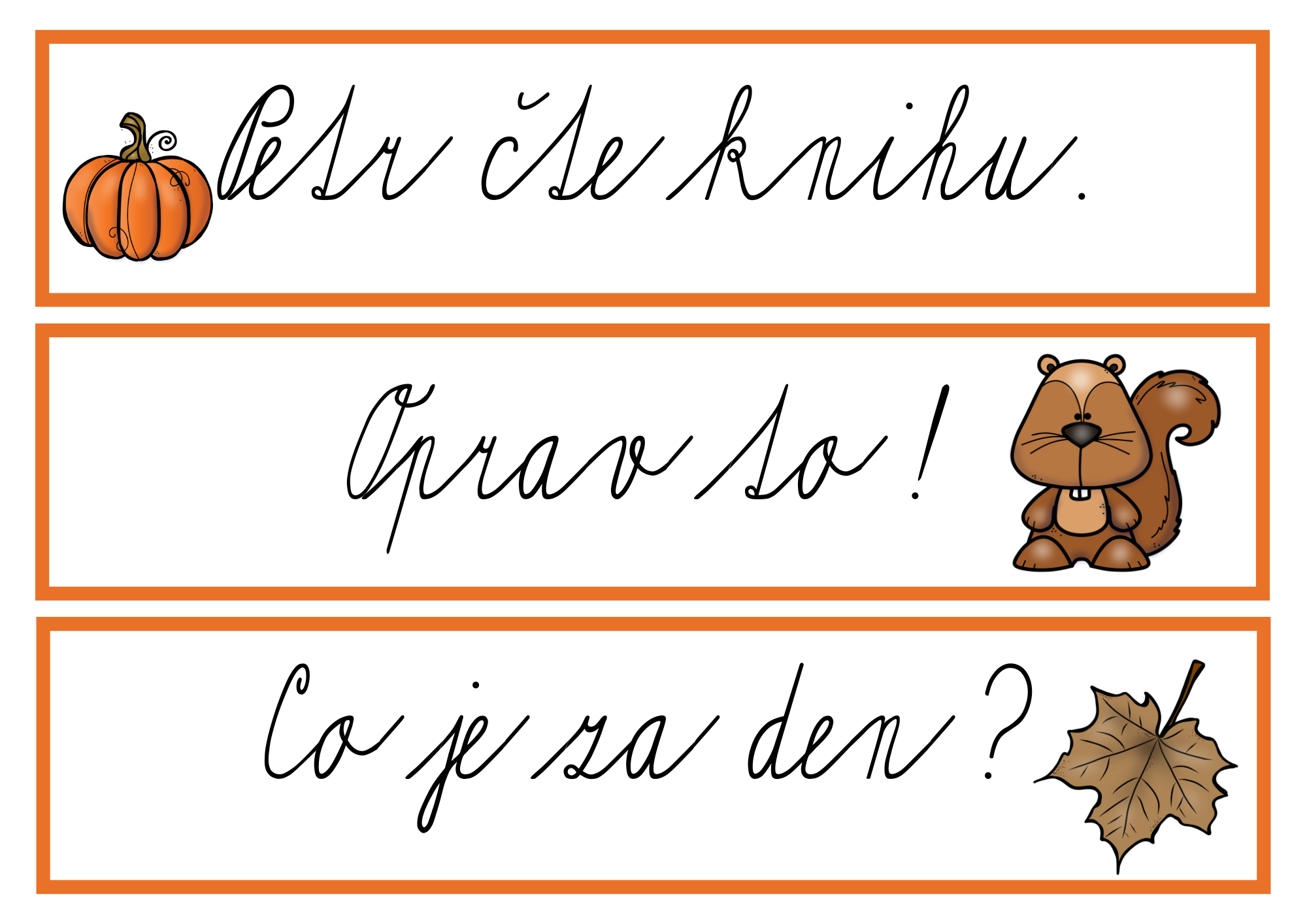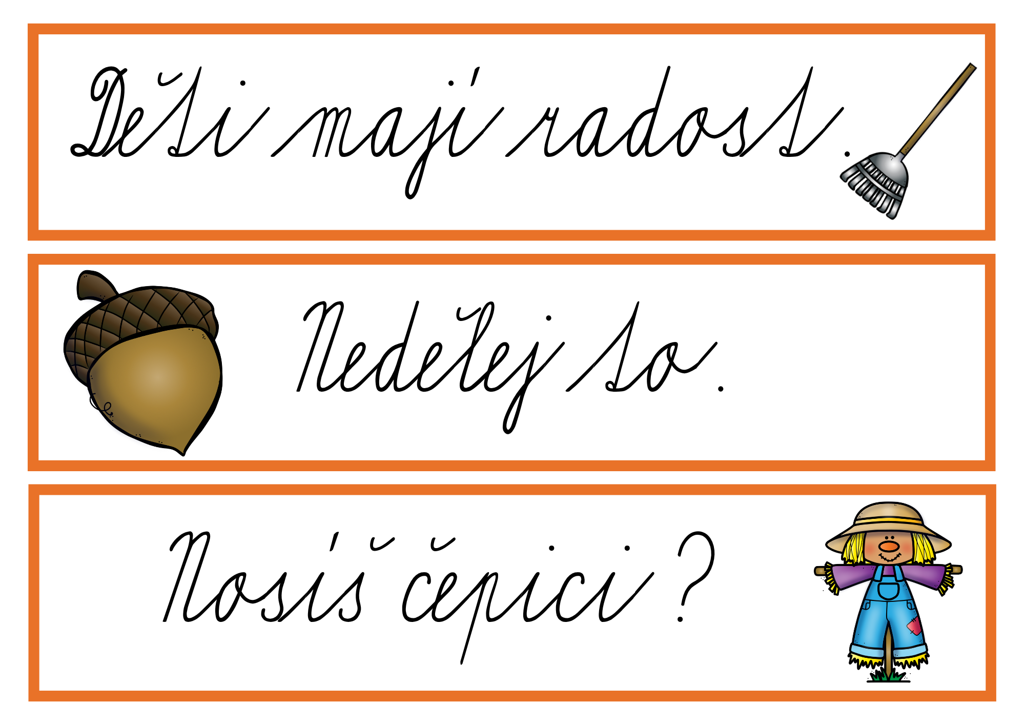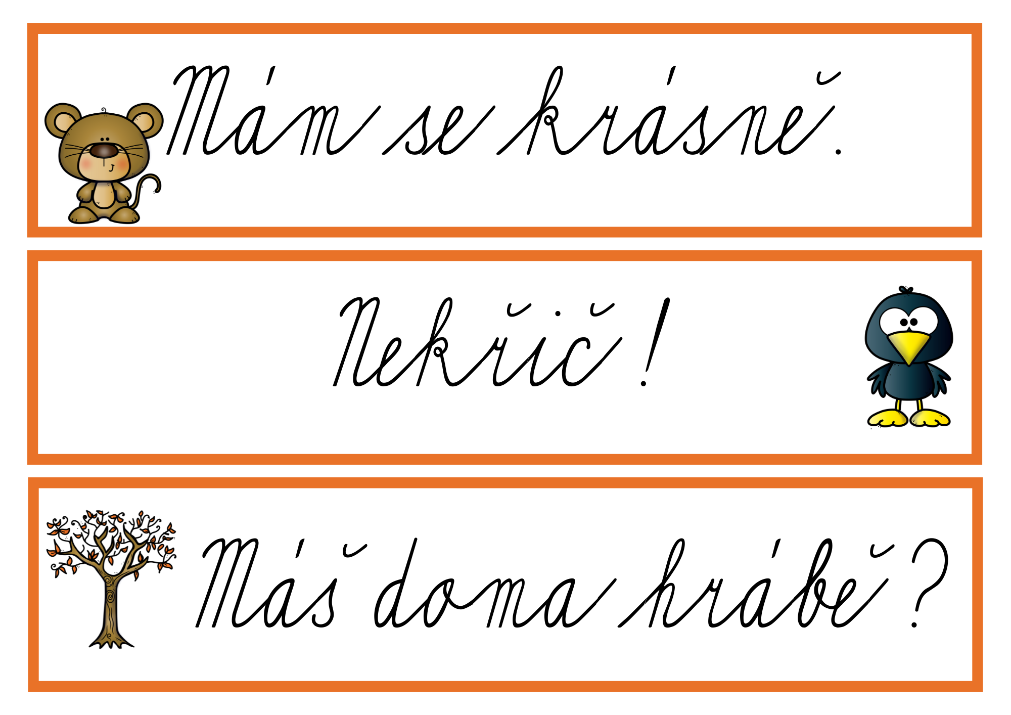 Kartičky lze využít i k přepisu – vytisknout ve větším formátu a nechat děti věty opisovat.