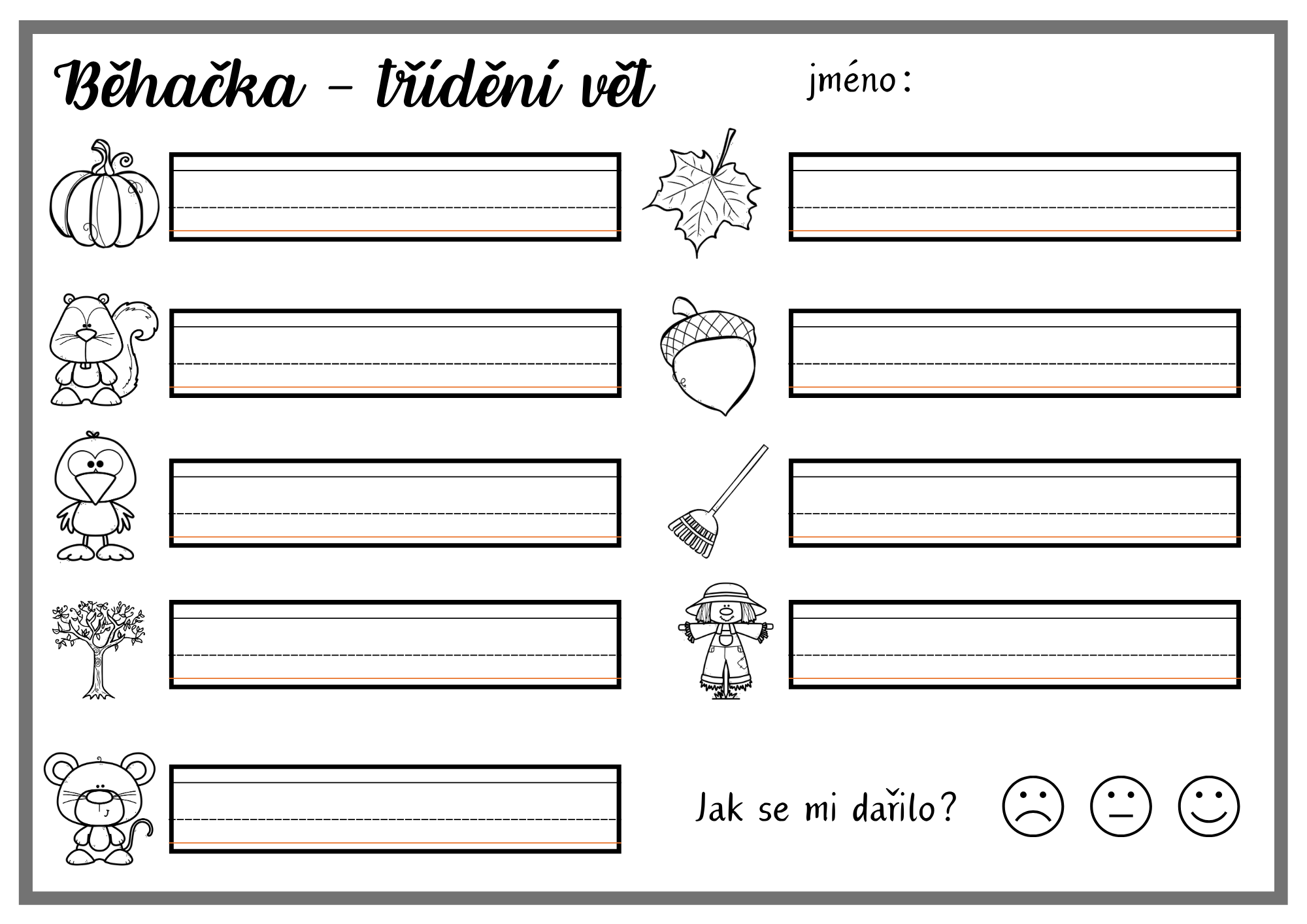Můžete volit lehčí variantu (zapisování hned u kartičky) nebo těžší (zapamatovat si větu a zapsat až u lavice).