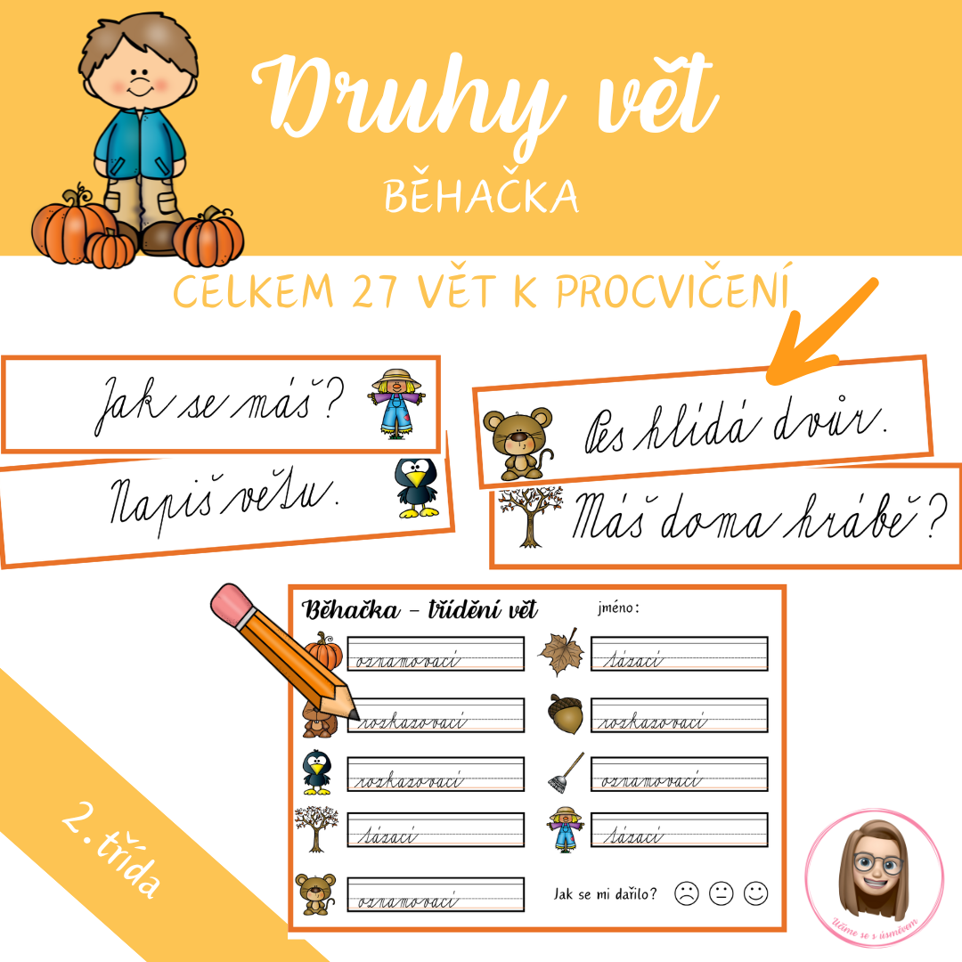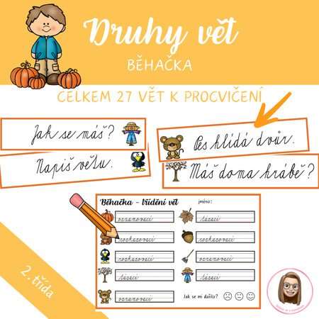 Zábavná běhačka, při které si děti procvičí druhy vět – oznamovací, tázací a rozkazovací. Hra spojuje čtení, psaní, paměť i pohyb a motivuje děti k aktivnímu učení.