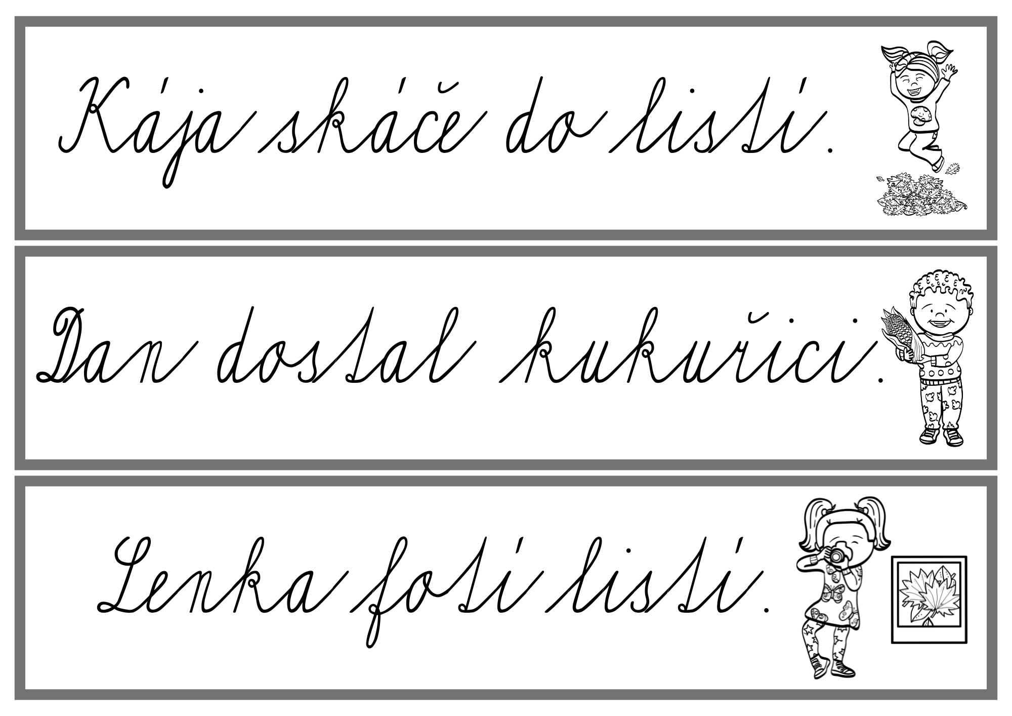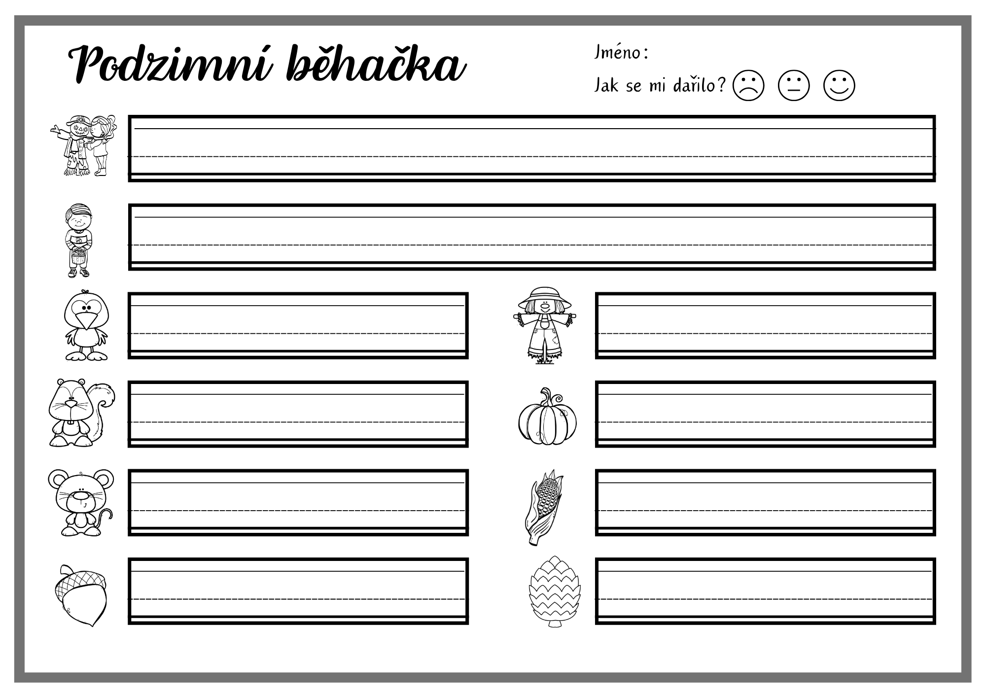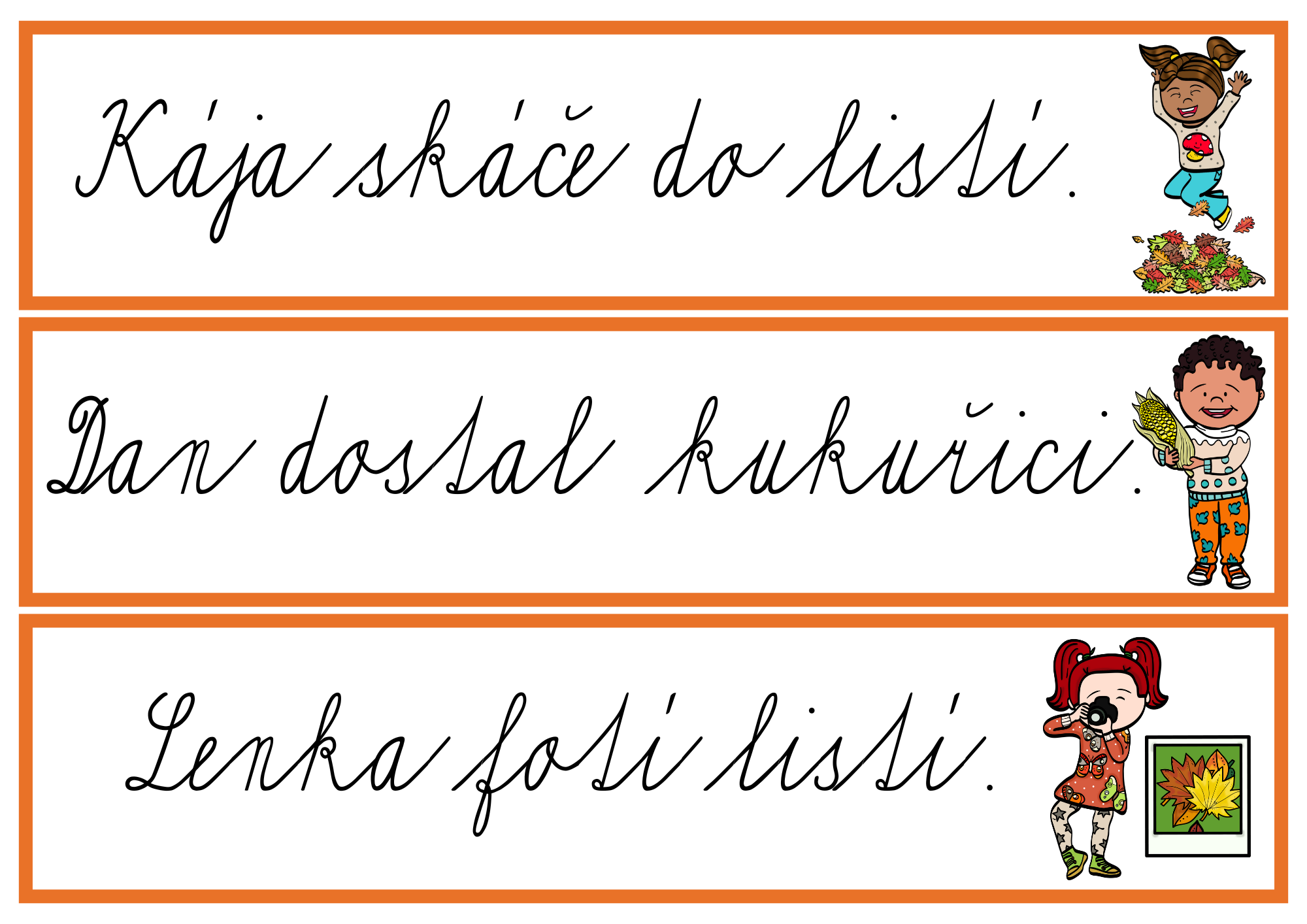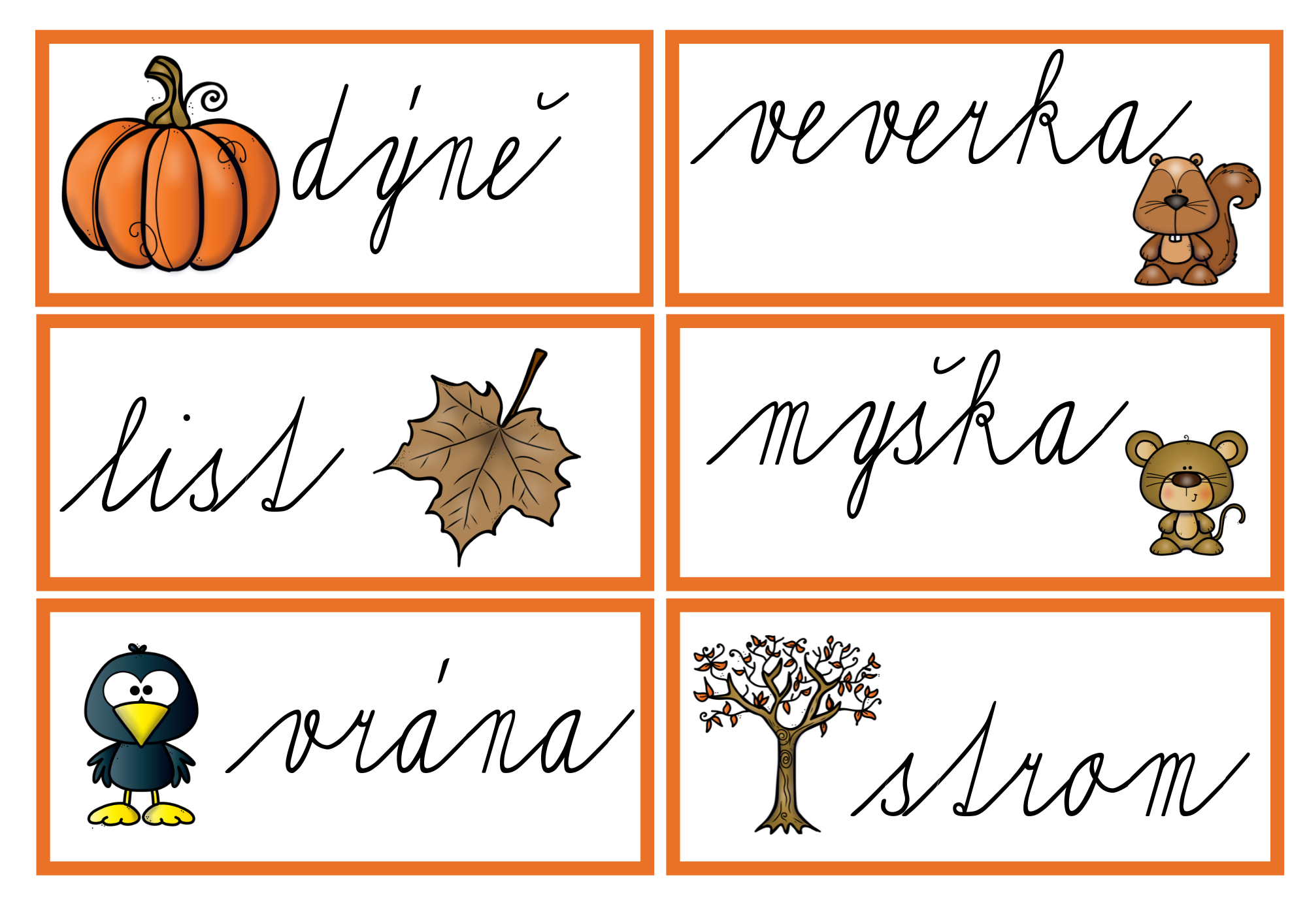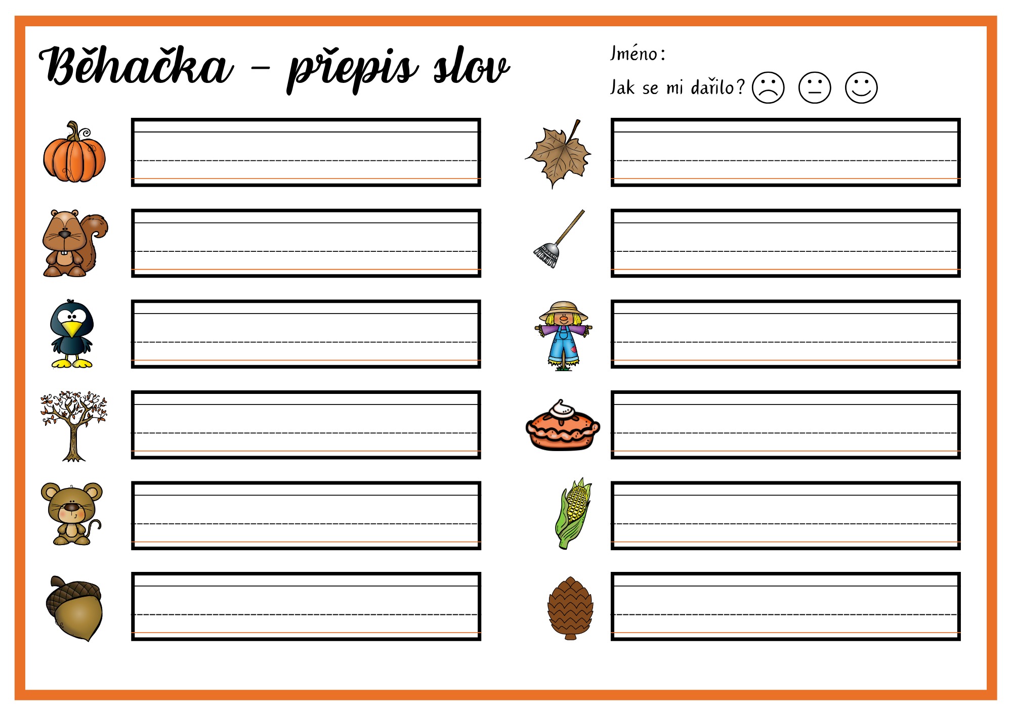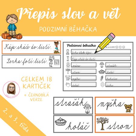 Hravá podzimní aktivita, která propojuje pohyb, čtení a psaní. Děti čtou, opisují a přepisují slova i celé věty, čímž si upevňují dovednost přesného a plynulého přepisu i porozumění textu.