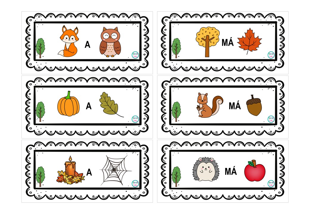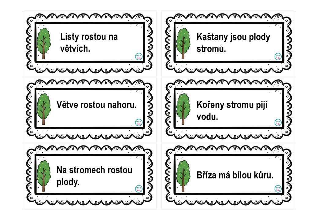 6 karet s obrázkovou větou, vhodné pro prvňáky