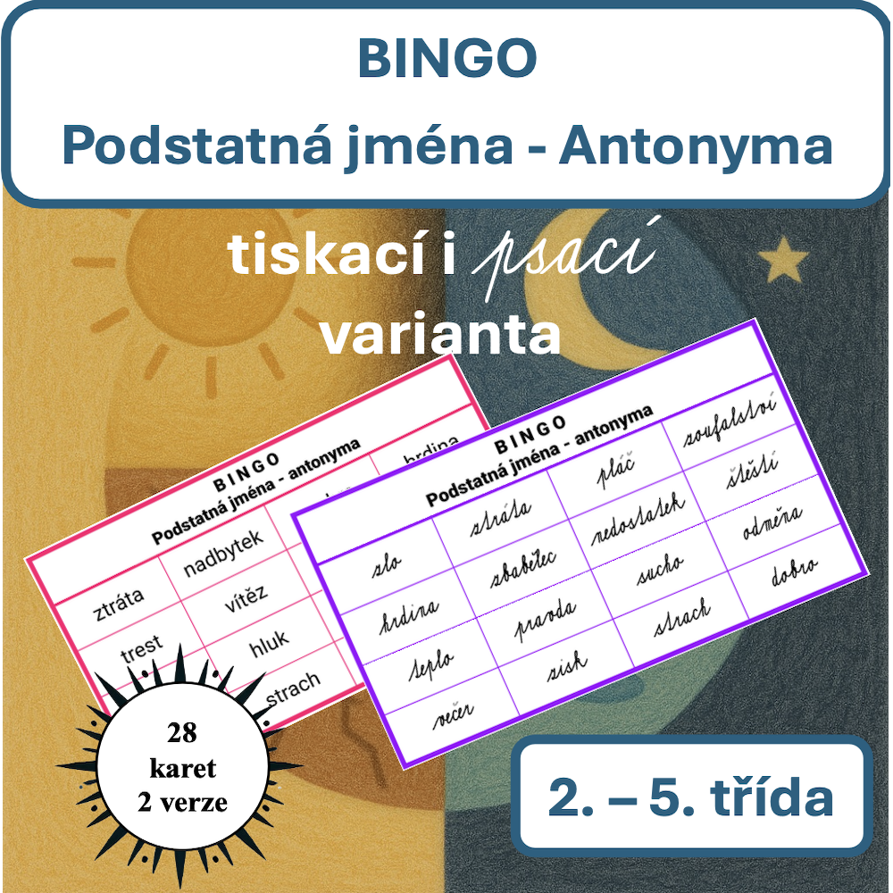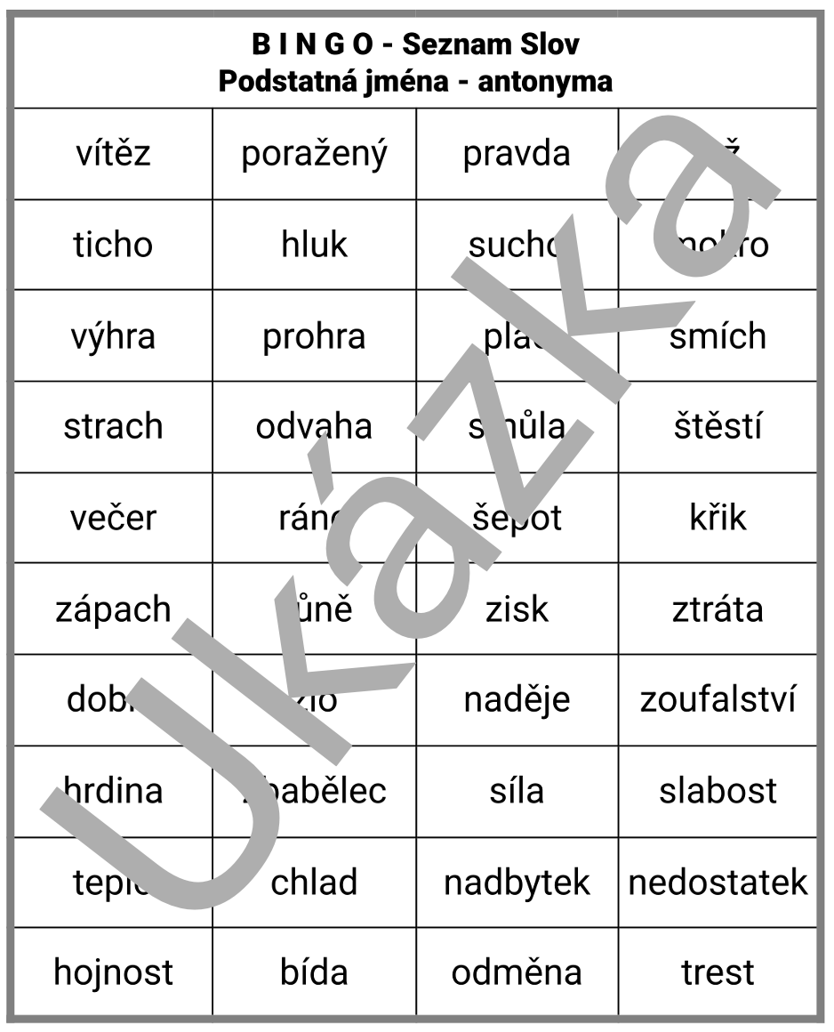 Tato didaktická hra cvičí pozornost, soustředěnost a slovní zásobu. Díky ní si žáci zažijí a procvičí podstatná jména a propojí si jejich význam se slovy protikladnými. Zvyšujeme tak jejich porozumění i motivaci k práci.