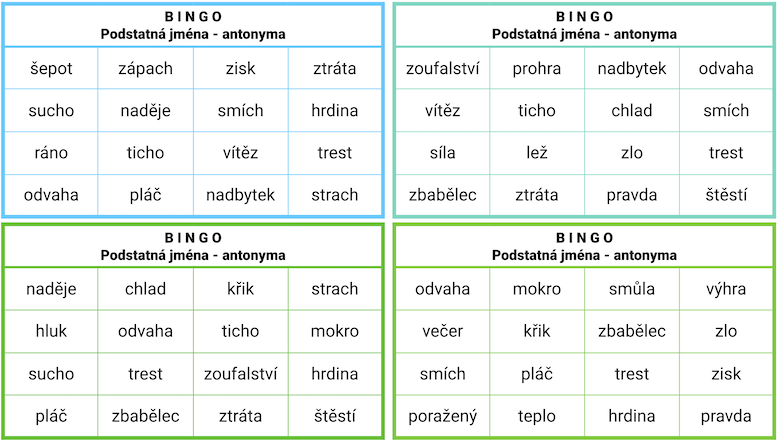 - ten, kdo řekne správné slovo a škrtá v bingo určí u slova