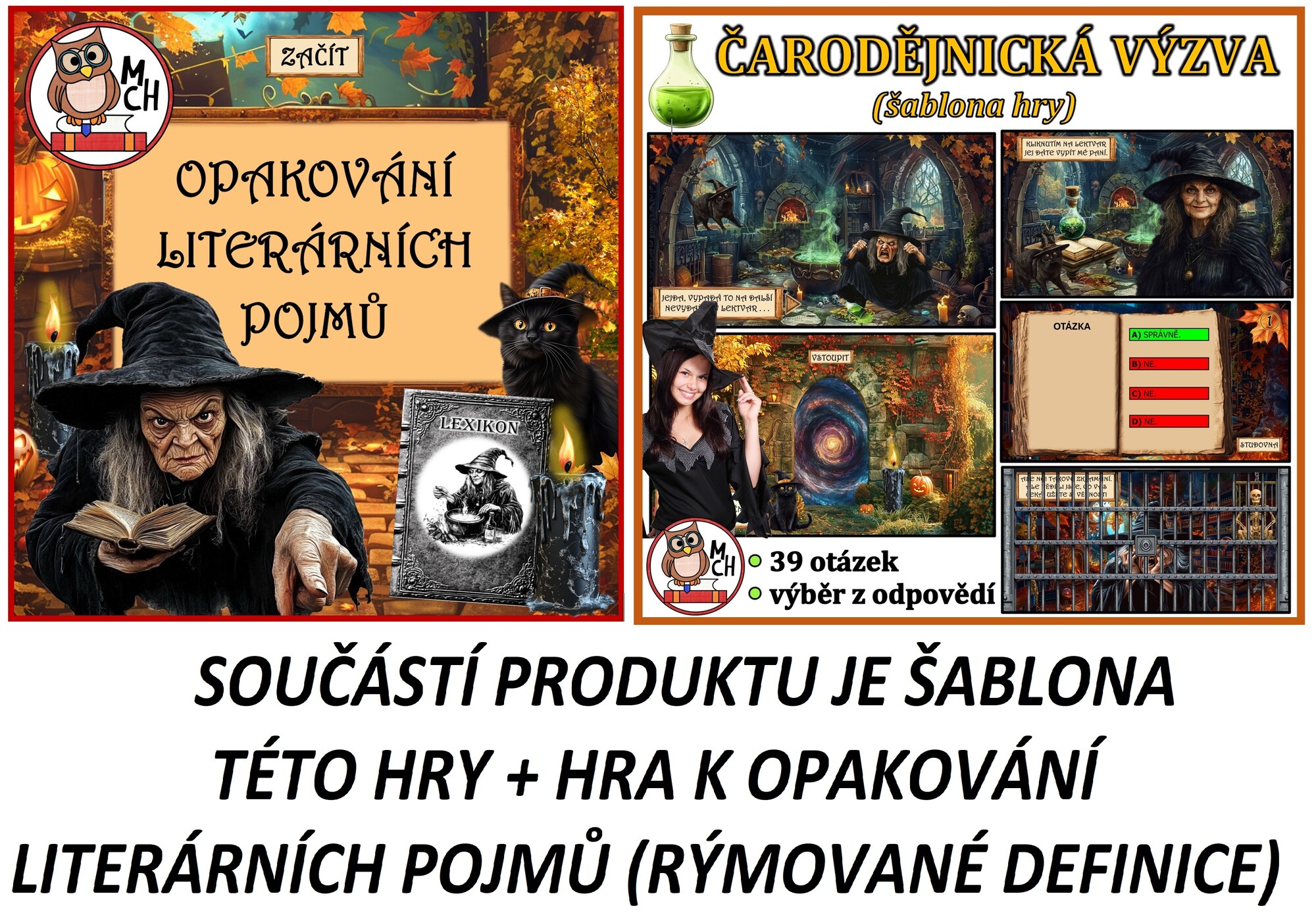 SOUČÁSTÍ PRODUKTU JE NAVÍC ŠABLONA TÉTO HRY + HRA DO LITERATURY (opakování literárních pojmů, příprava k JPZ pro 9. třídu - lexikon s rýmovanými definicemi lit. pojmů, křížovka a aktivita pro cryptex)